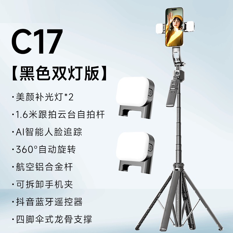 • C17 [블랙 듀얼 라이트 버전] 1.6m 알루미늄 합금 폴*AI 지능형 얼굴 추적 + 블루투스 리모콘
