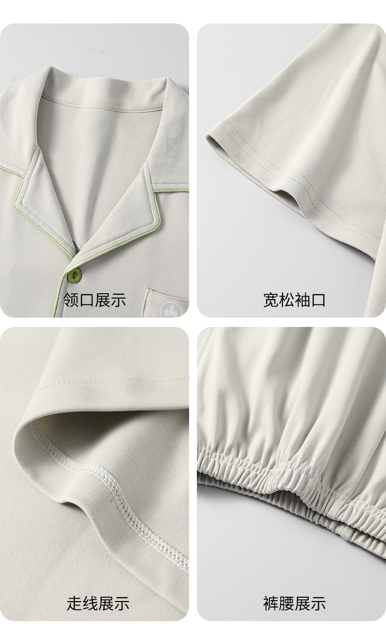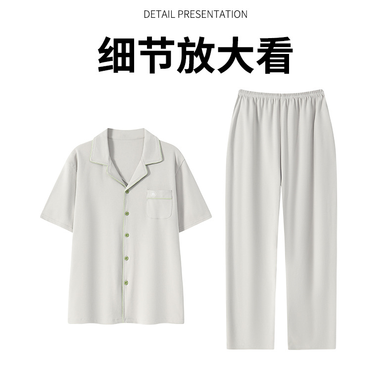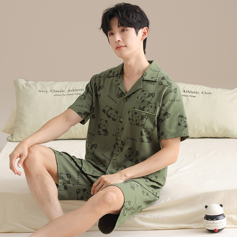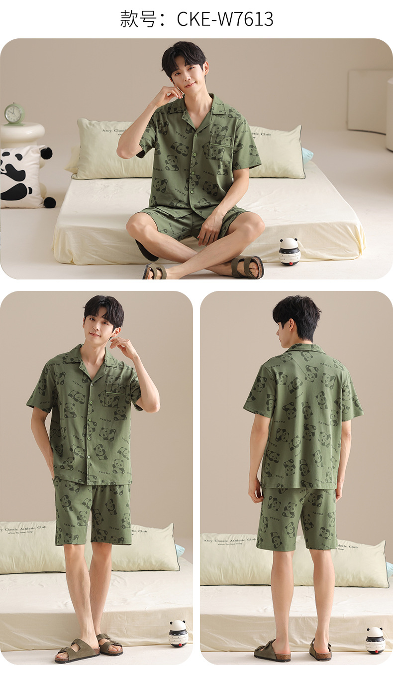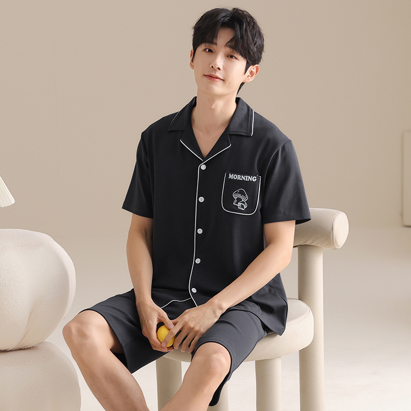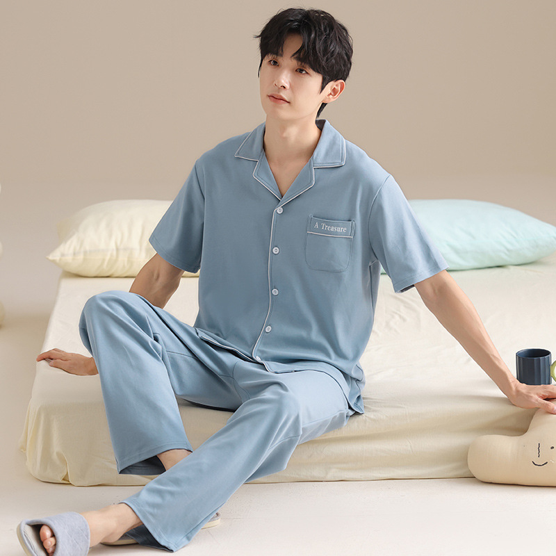 여름 신상 순면 가정복 도매 남성 잠옷 반팔 바지 순면 가디건은 단색 양복 외부에 착용 가능스토어 가기