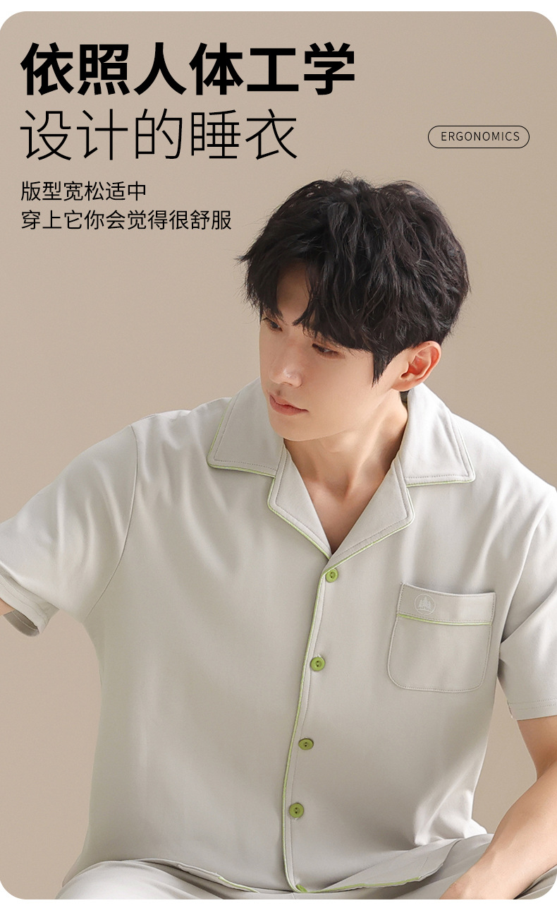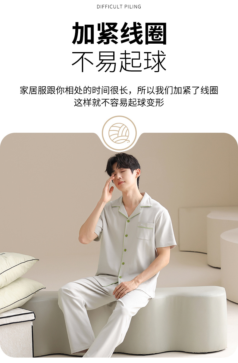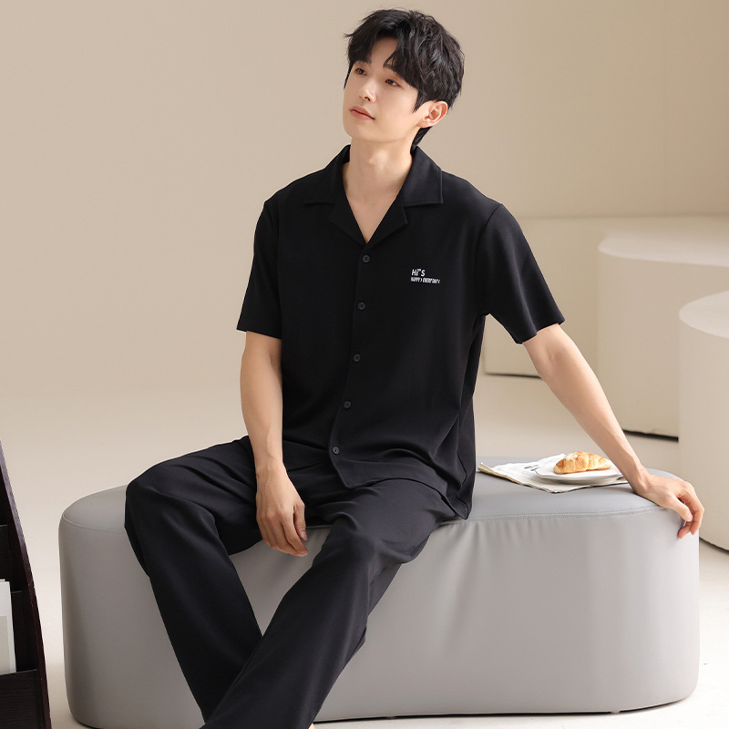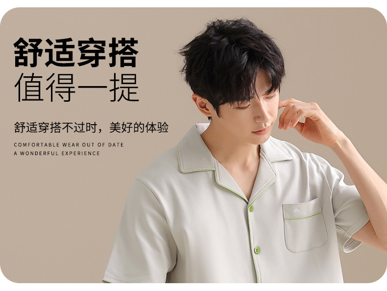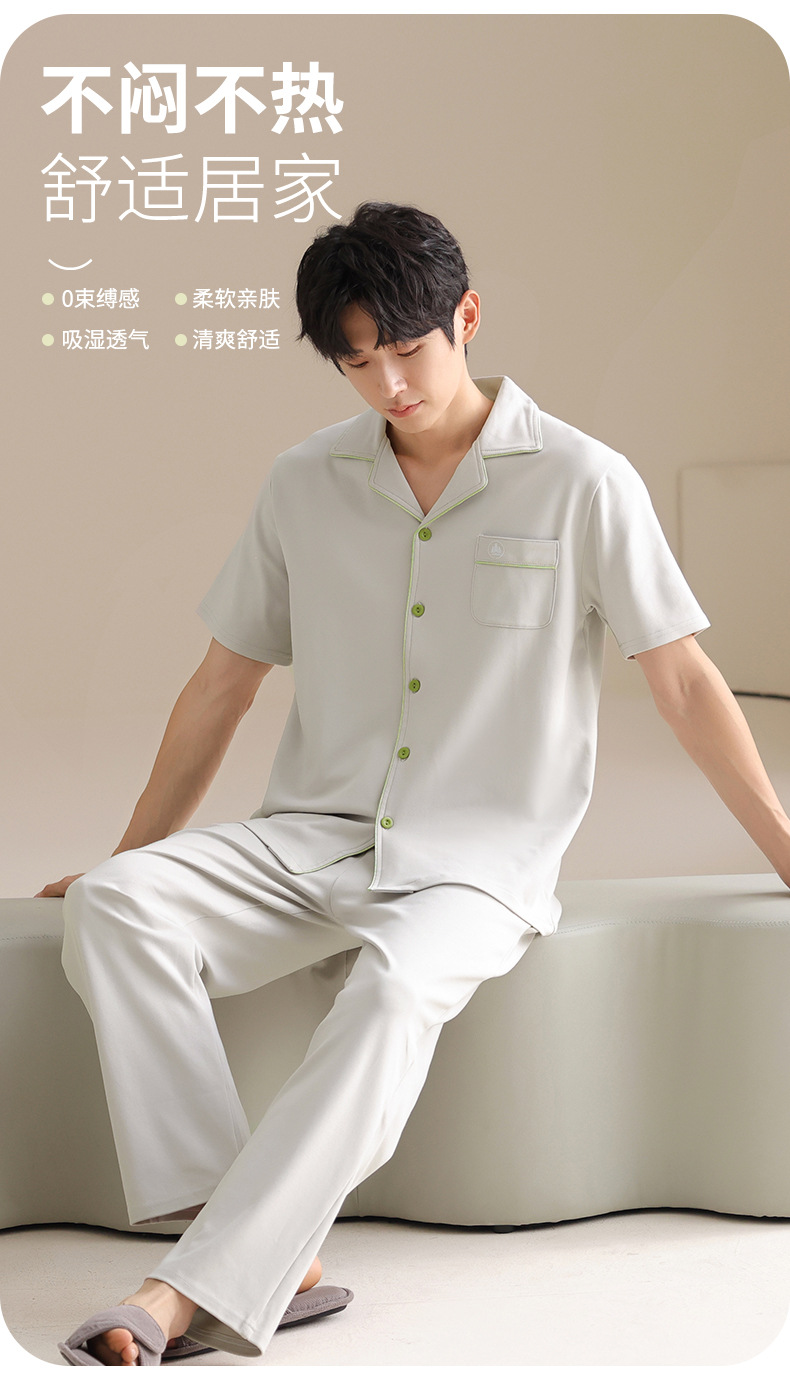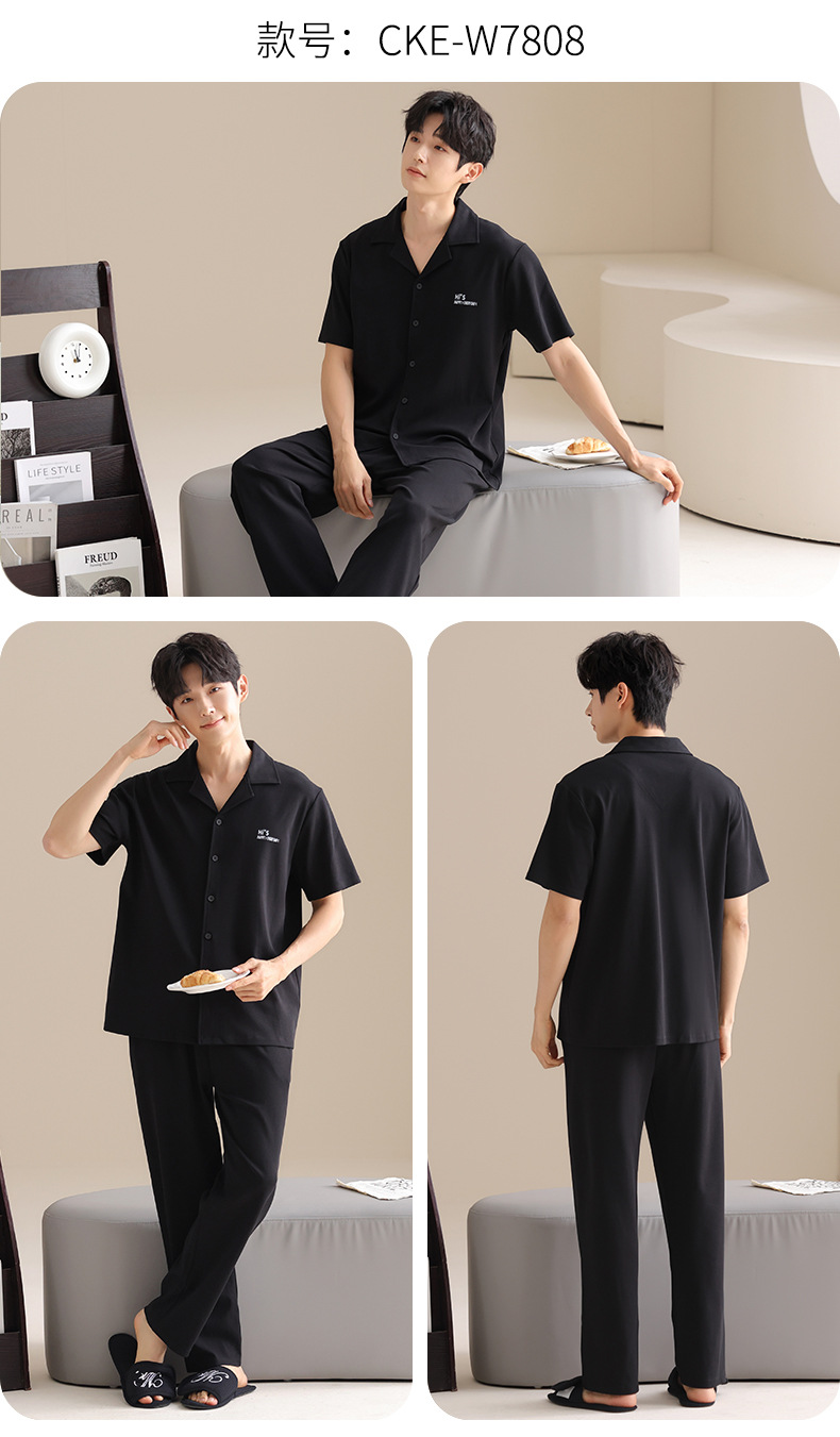 여름 신상 순면 가정복 도매 남성 잠옷 반팔 바지 순면 가디건은 단색 양복 외부에 착용 가능스토어 가기