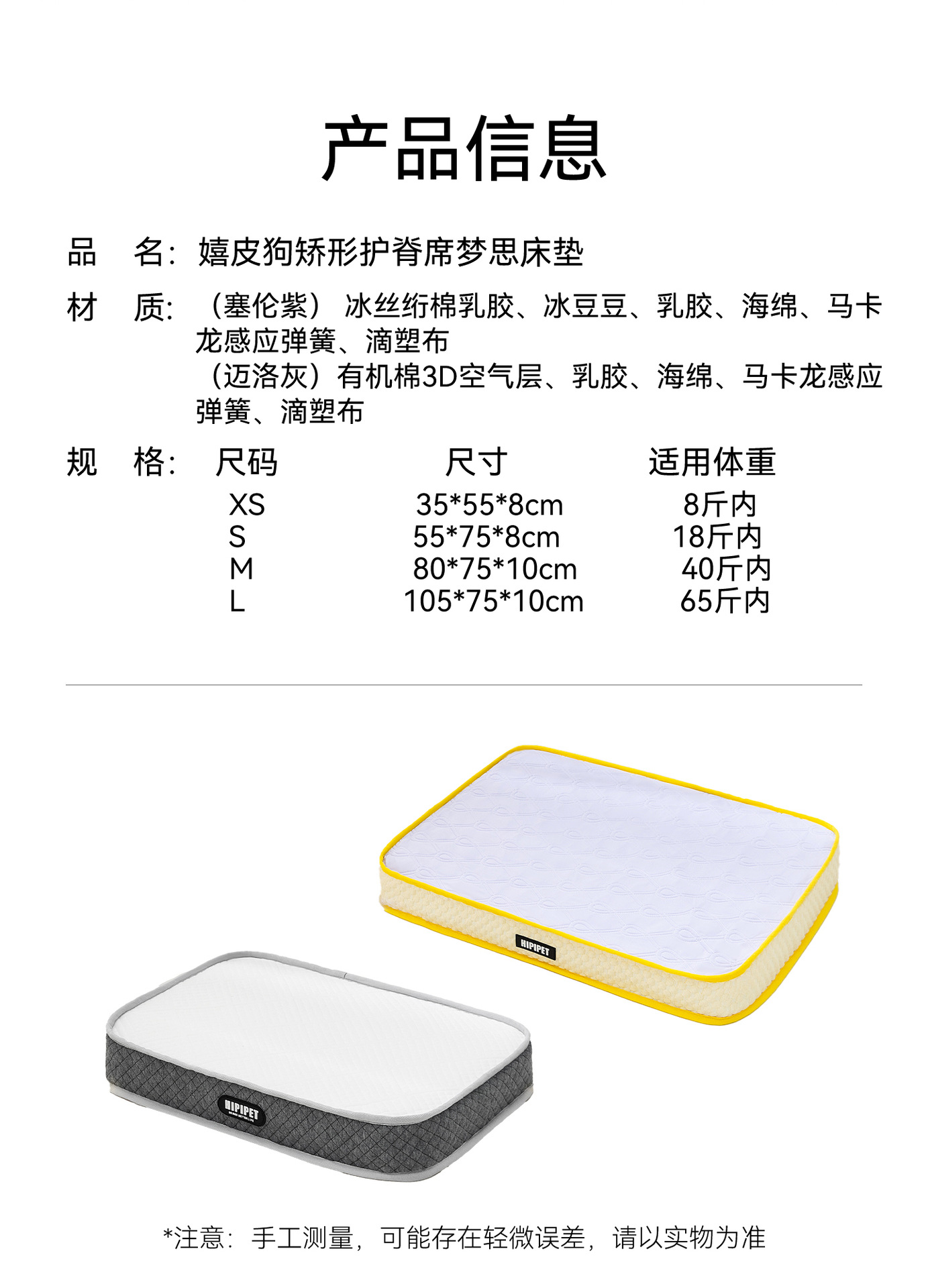 • XS: 35*55*8cm (적용 가능한 무게 4kg 이내)