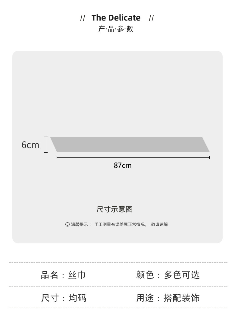 작은 실크 스카프, 고급스럽고 우아하며 분위기 있고 다재다능한 장식 스카프, 소녀의 하트 리본, 머리 묶음, 가방 리본