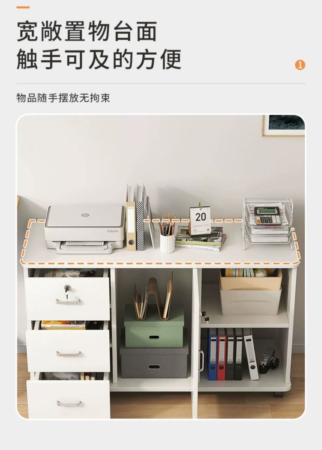 • [서랍 3개, 수납공간 2개, 잠금장치 및 도르래가 있는 문 스타일 1개] 따뜻한 흰색
