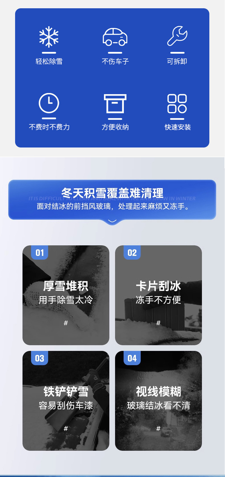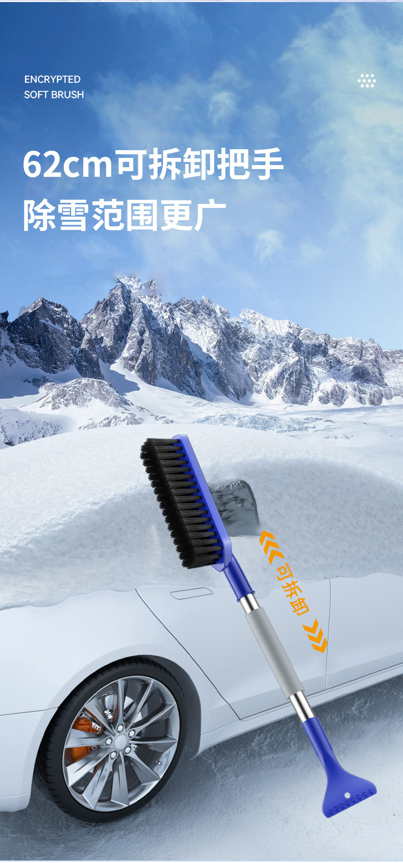 자동차 제설기, 2-in-1 제설 브러시, 얼음 제거 및 제설 브러시, 자동차 겨울 해동 및 제설 도구