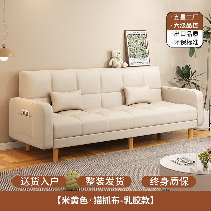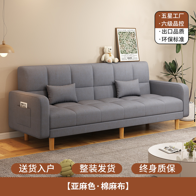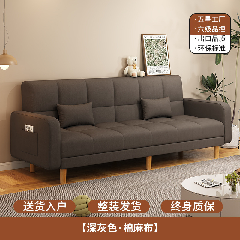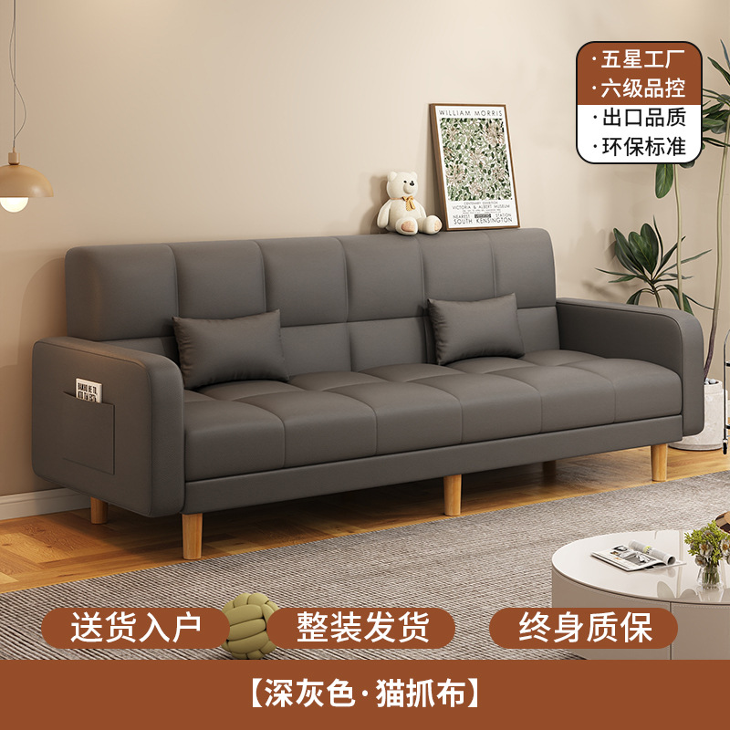 소형 거실용 소파 2025 새로운 스타일의 심플하고 모던한 3인용 임대실 패브릭 접이식 소파 베드 겸용