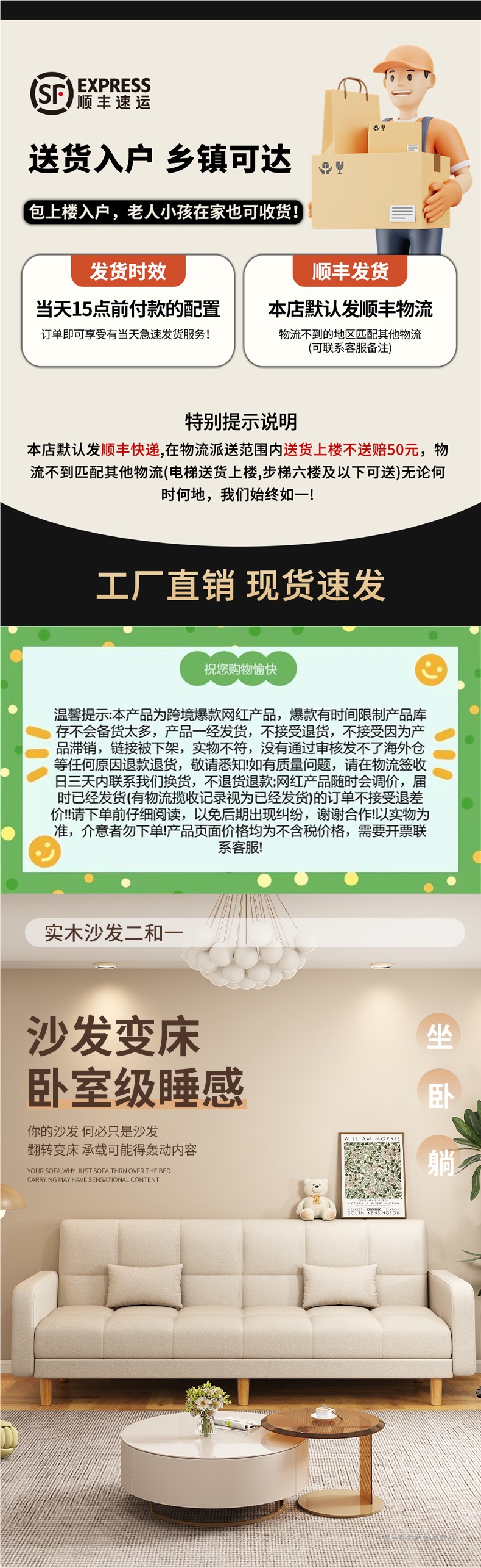소형 거실용 소파 2025 새로운 스타일의 심플하고 모던한 3인용 임대실 패브릭 접이식 소파 베드 겸용스토어 가기