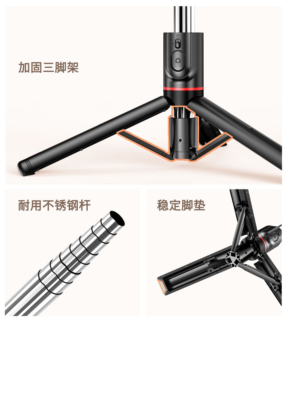 L15 可拆卸补光灯加固三脚架自拍杆(1110mm)