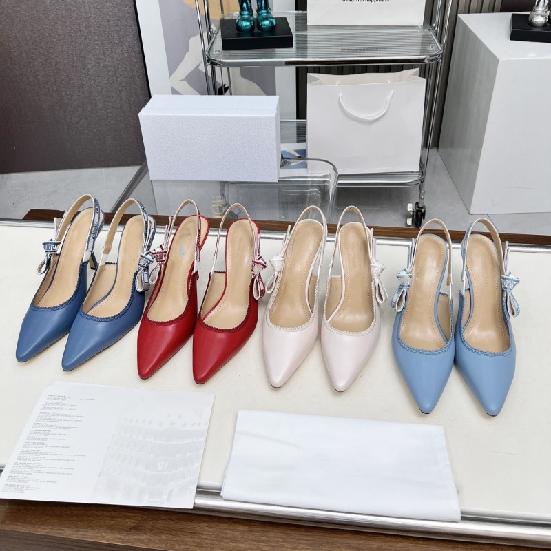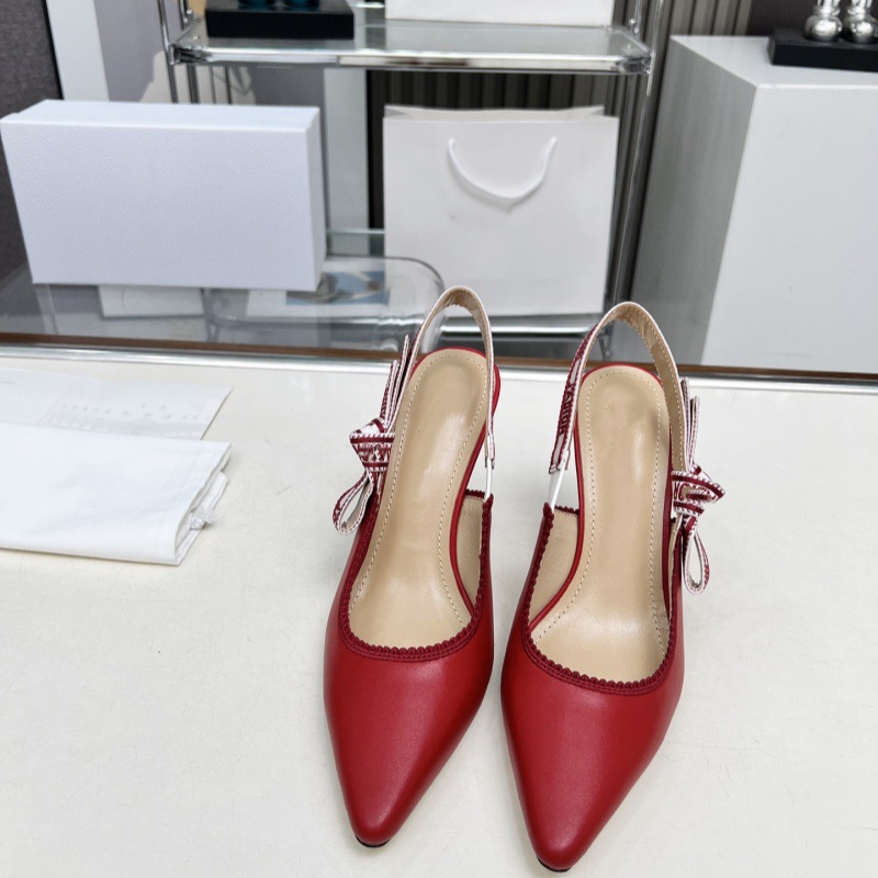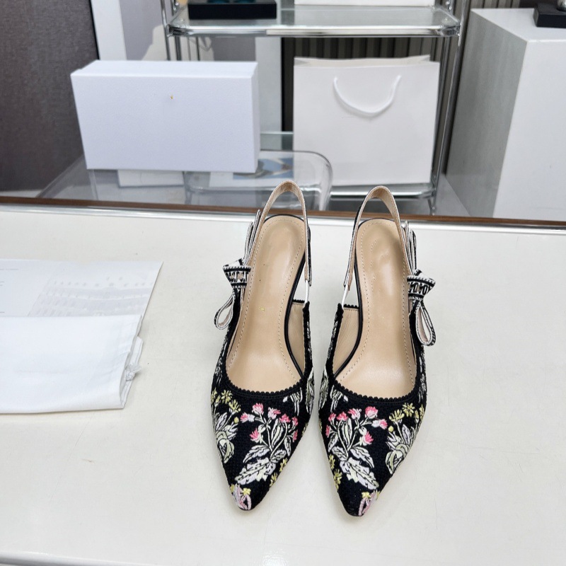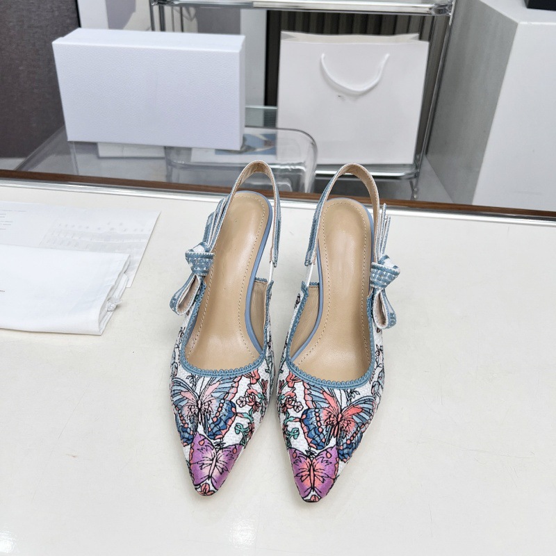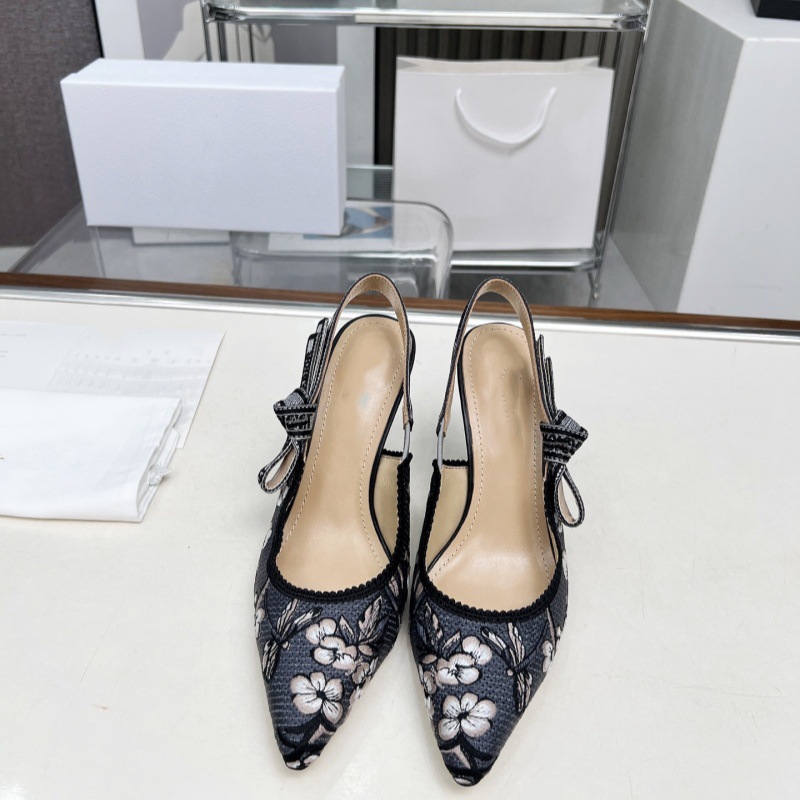 여성을위한 프랑스 자수 문자 보우 토 샌들 여름 새 스타일 d 포인티드 토 키튼 힐 다용도 하이힐스토어 가기