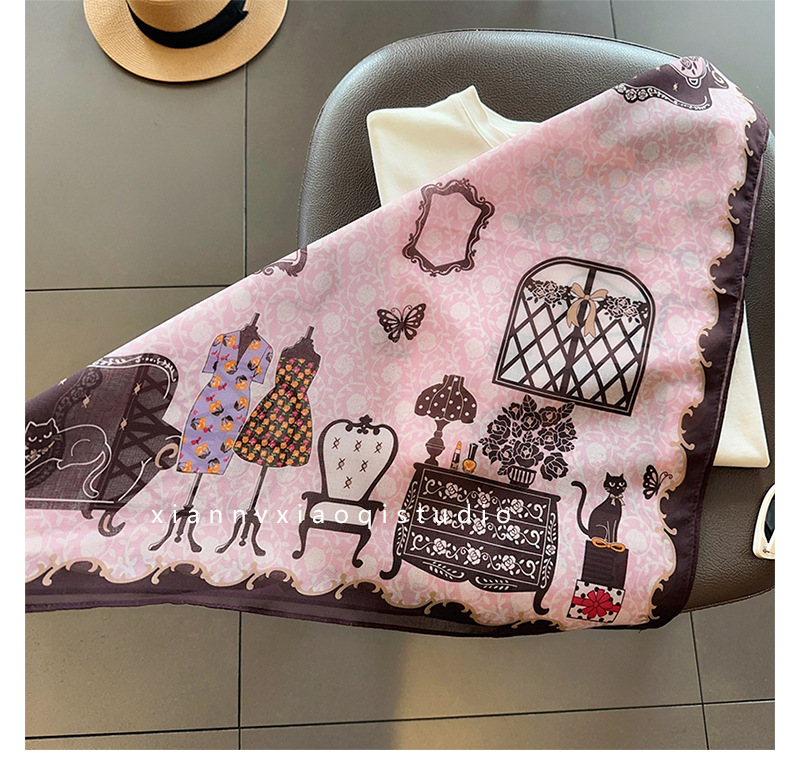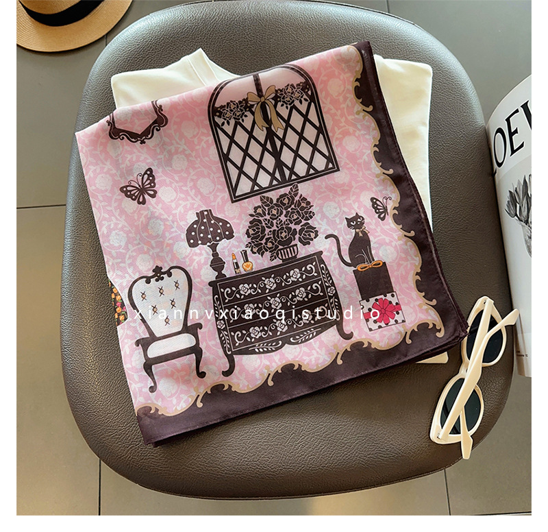 핑크 옷장~ 부드러운 실크 코튼 통근 레이어드 실크 스카프 패셔너블한 여성용 작은 사각 스카프 여름 에어컨 룸 넥 스카프스토어 가기