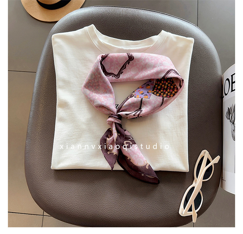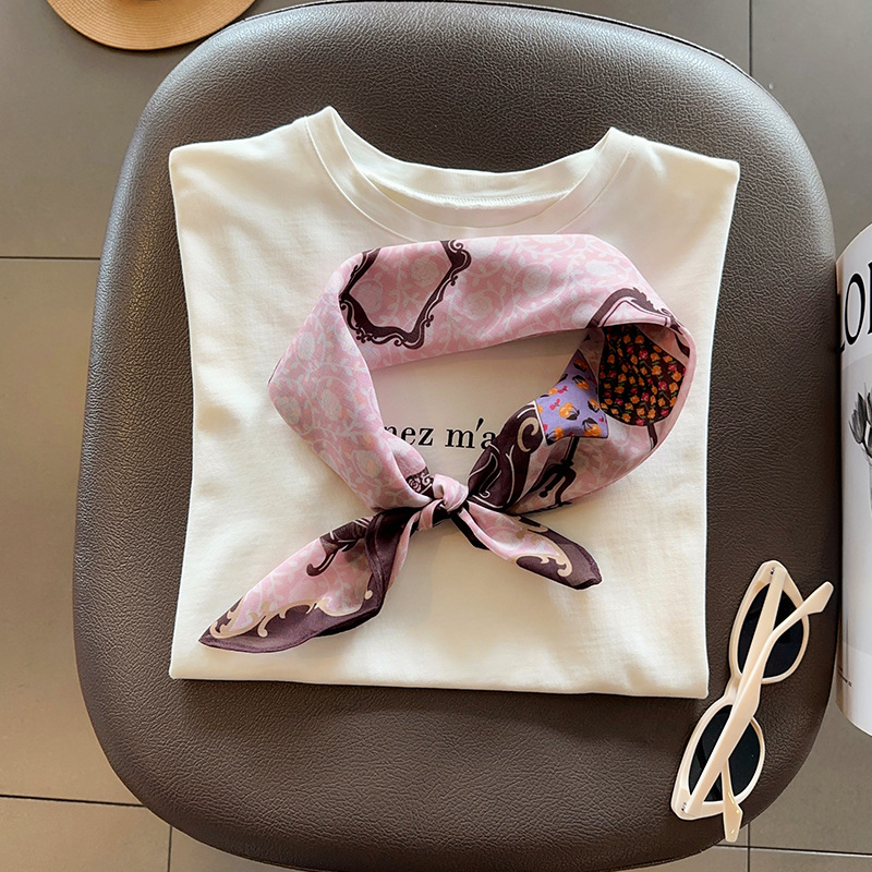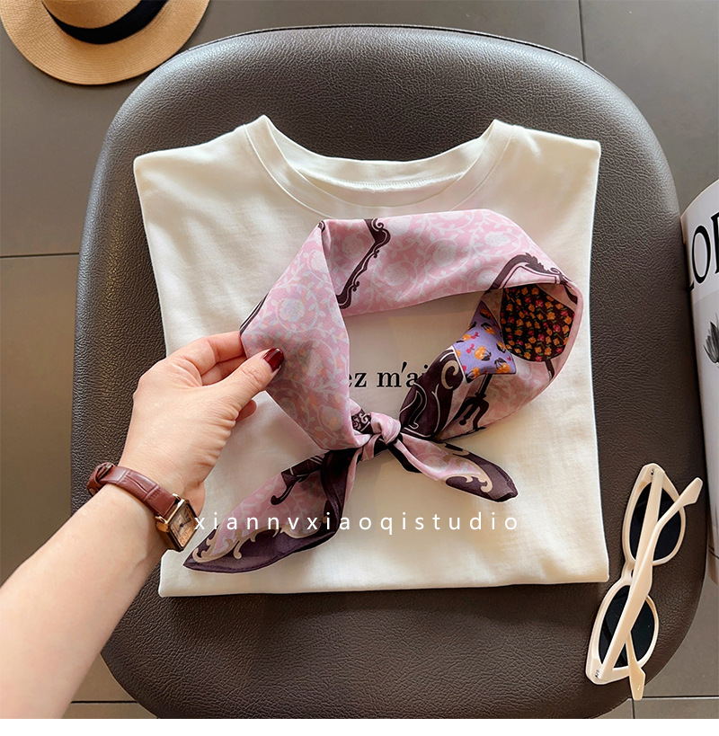 핑크 옷장~ 부드러운 실크 코튼 통근 레이어드 실크 스카프 패셔너블한 여성용 작은 사각 스카프 여름 에어컨 룸 넥 스카프