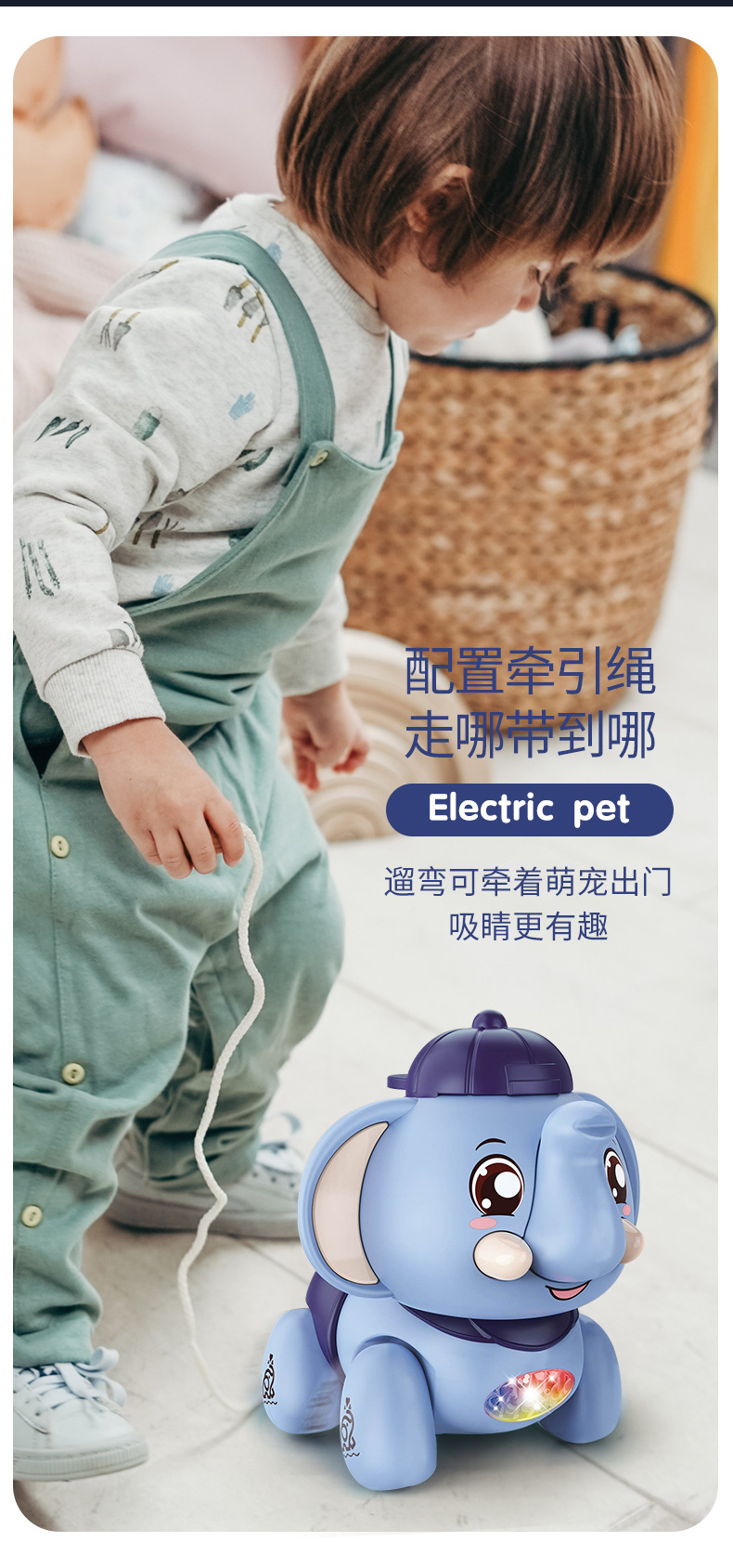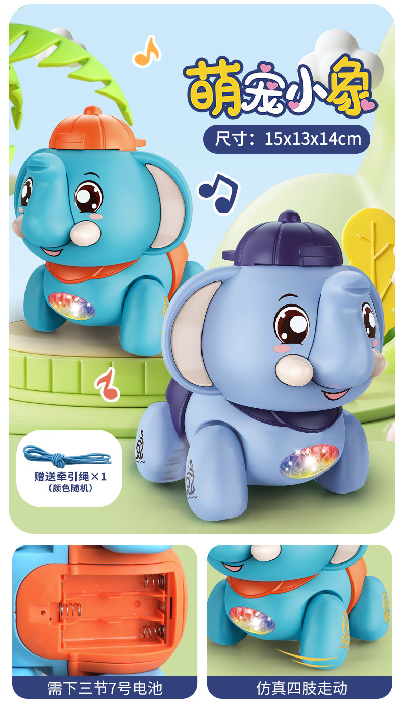어린이 전기 코끼리는 음악과 노래를 따라 걷는 코끼리 시뮬레이션 1-2 세 3 아기 소년과 소녀 가죽 끈 장난감스토어 가기
