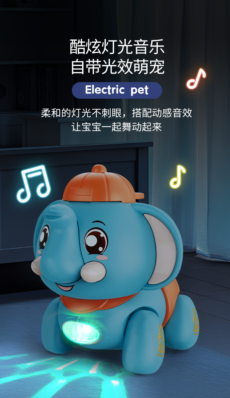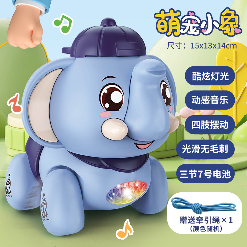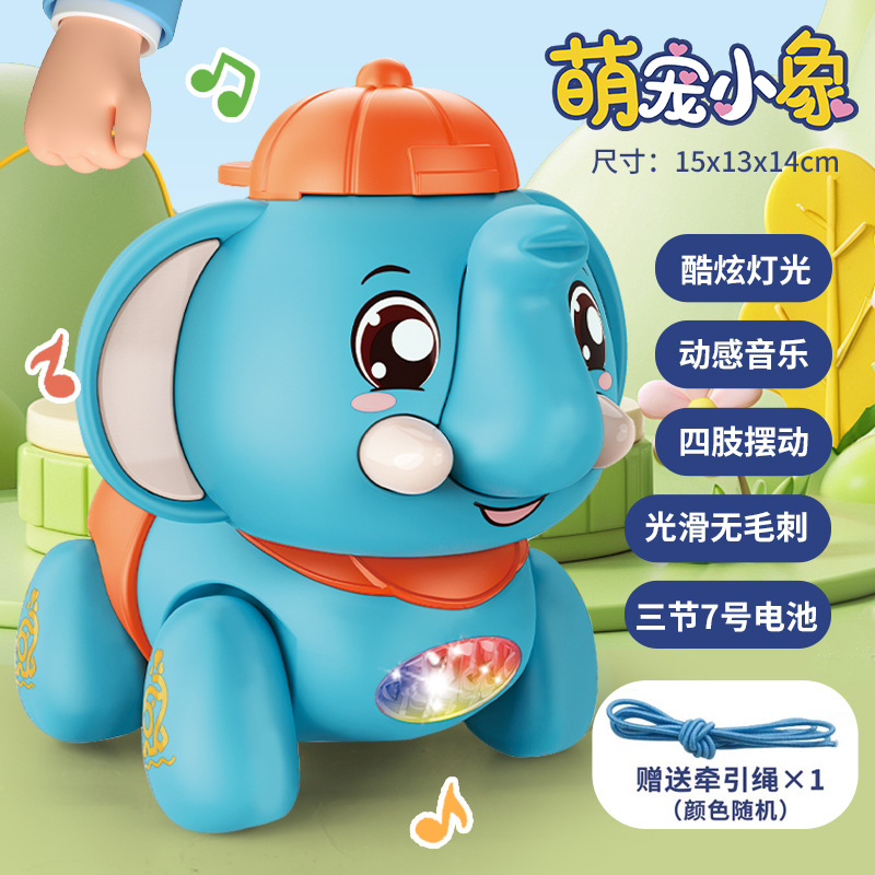 어린이 전기 코끼리는 음악과 노래를 따라 걷는 코끼리 시뮬레이션 1-2 세 3 아기 소년과 소녀 가죽 끈 장난감