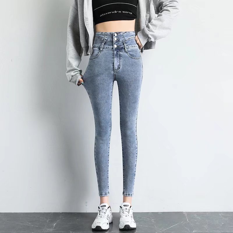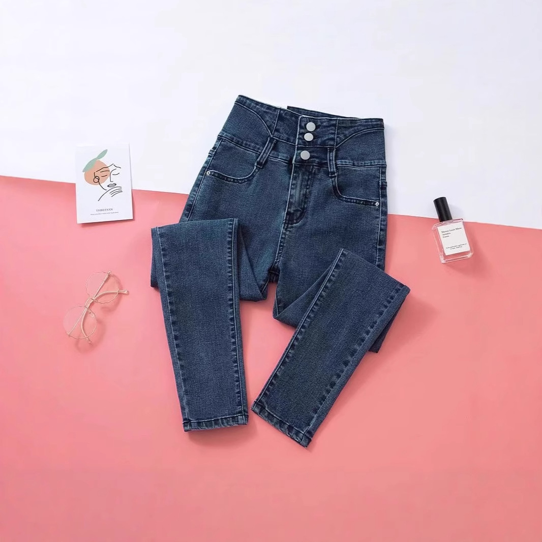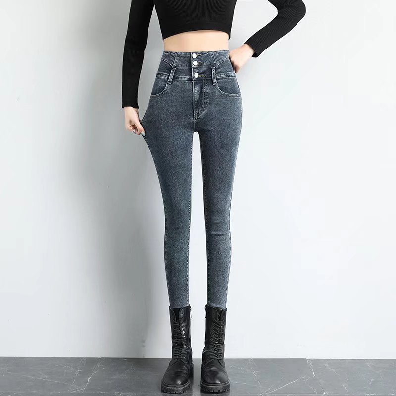 2025년 가을 겨울 여성용 청바지 새로운 스타일 하이 웨이스트 슬리밍 스트레치 타이트 아우터웨어 슬림 펜슬 바지스토어 가기