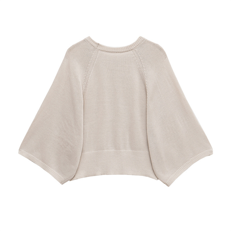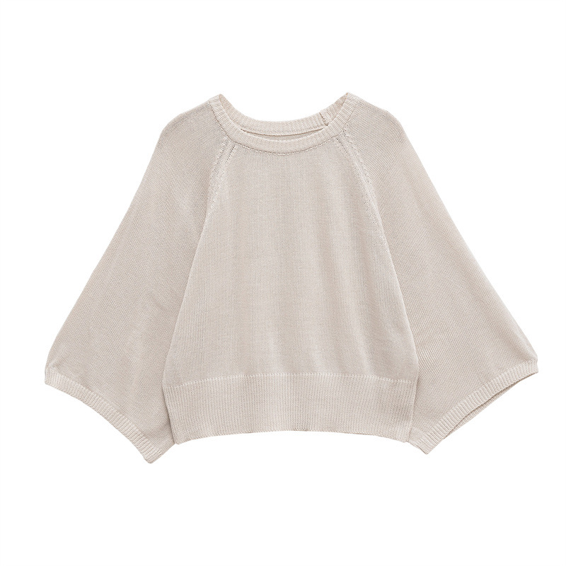 국경 간 대외 무역 2025 유럽과 미국 스타일의 패션 여성 의류 단순 넓은 소매 라운드 넥 스웨터 탑 5536021스토어 가기