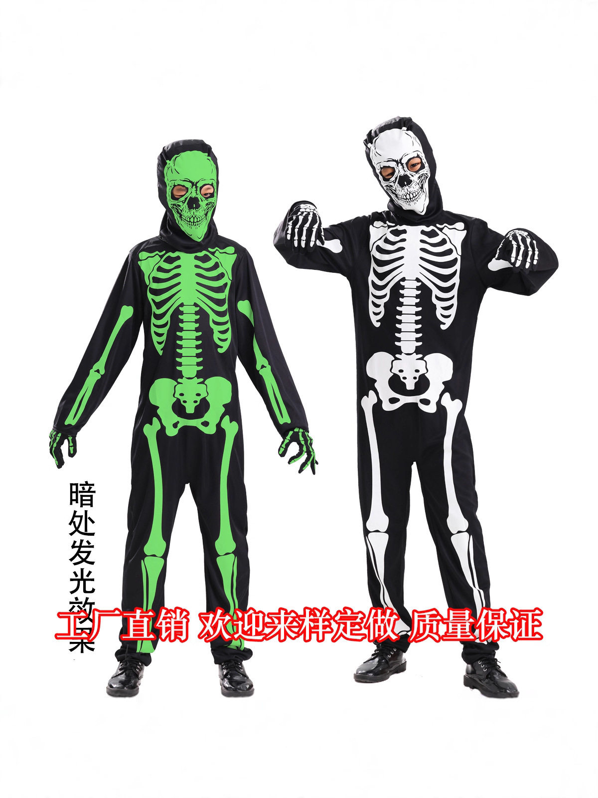 할로윈 어린이 의상 어린이를위한 빛나는 해골 유령 유령 캐릭터 드레스 원피스 무대 공연 파티 의상