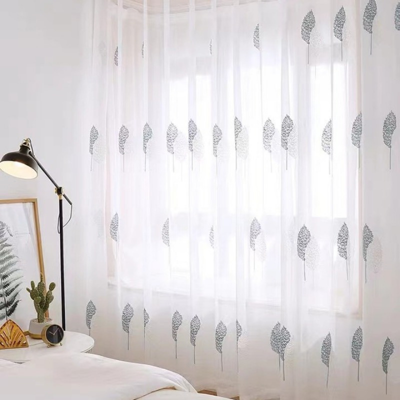현대적인 심플한 흰색 거즈 거실 발코니 침실 반투명 거즈 커튼 스팟 자수 커튼 연구 창 스크린 완제품 재고 있음스토어 가기