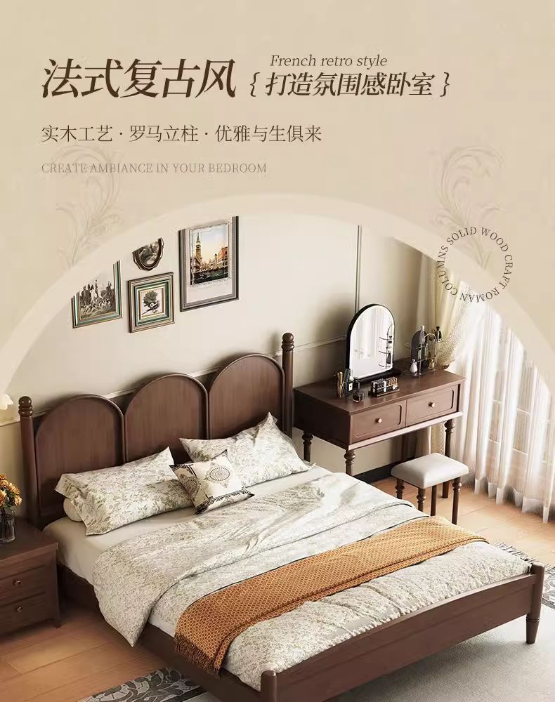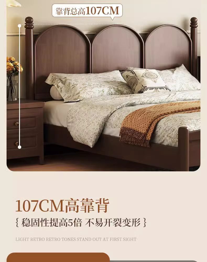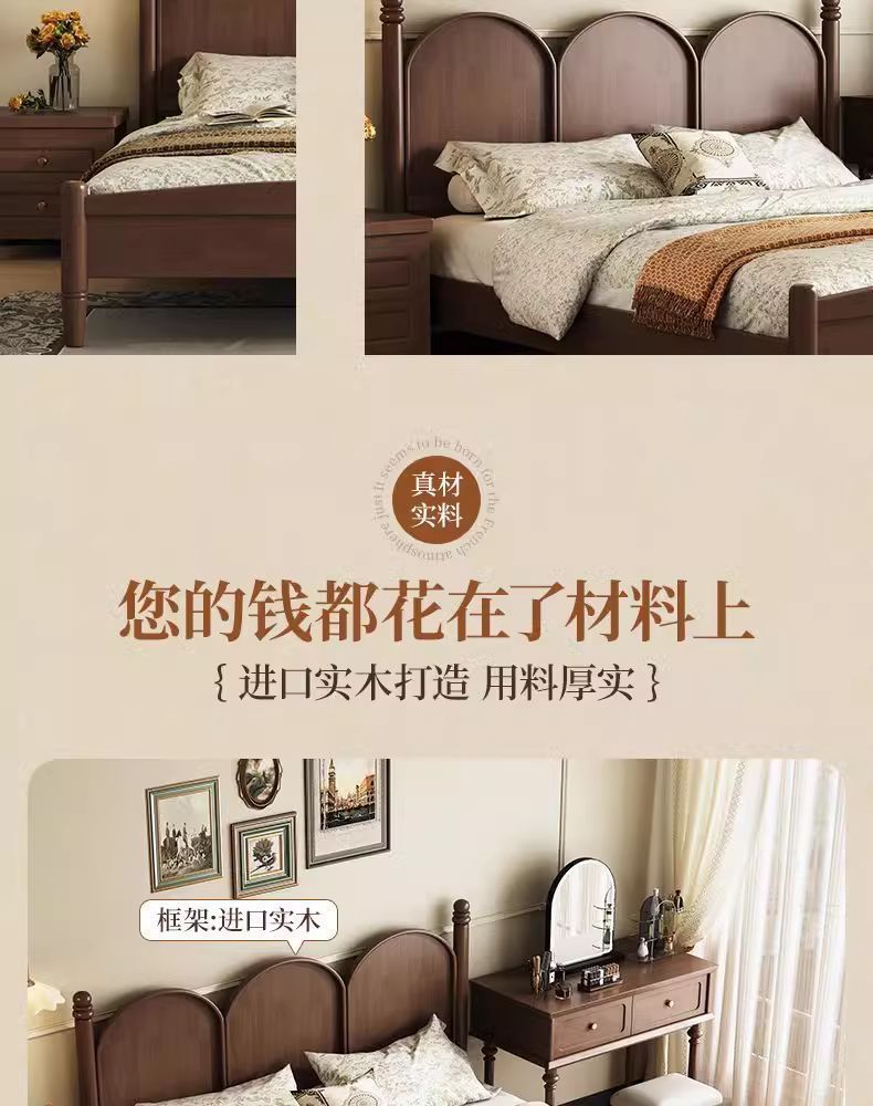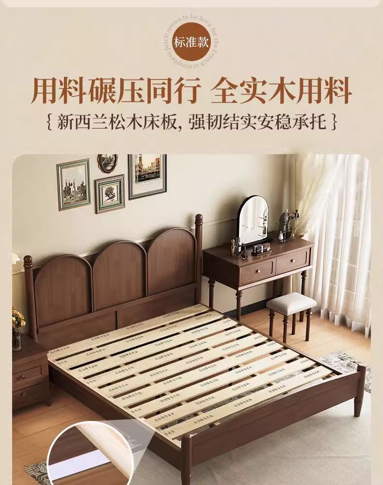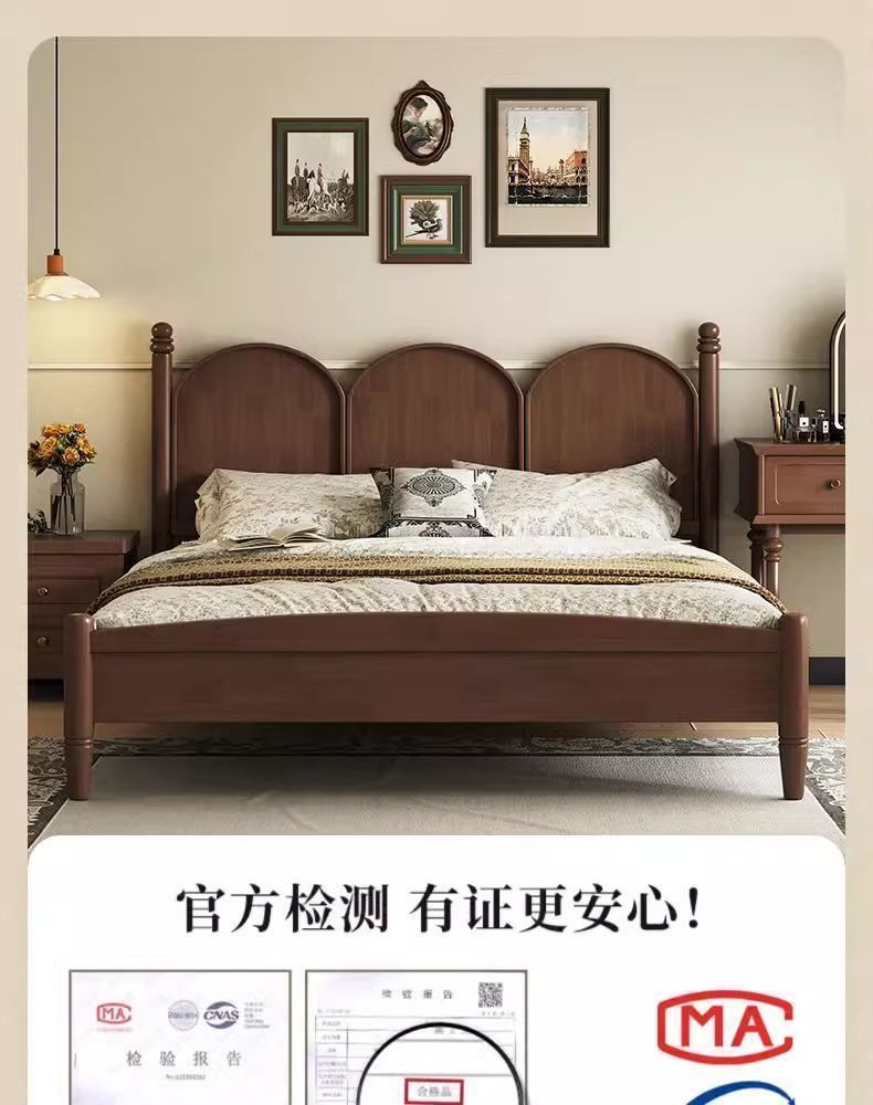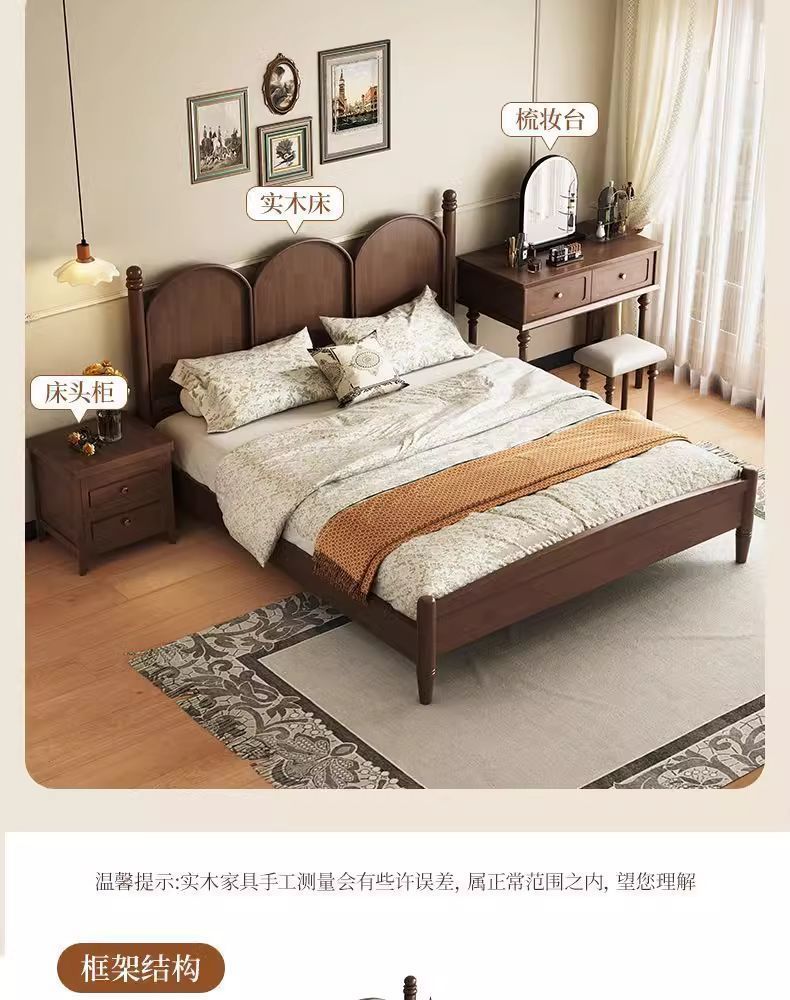 북유럽 단단한 나무 침대 현대 간단한 1.5M1.8M 더블 침대 중세 스타일 침대 마스터 침실 프랑스 복고풍 침대 작은 아파트스토어 가기