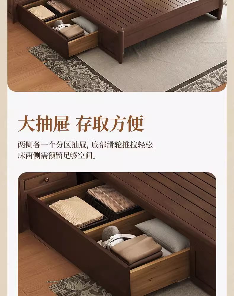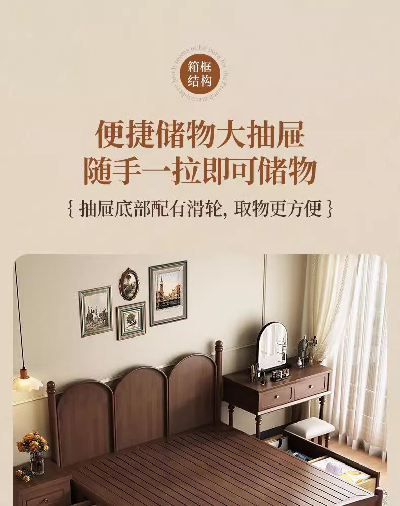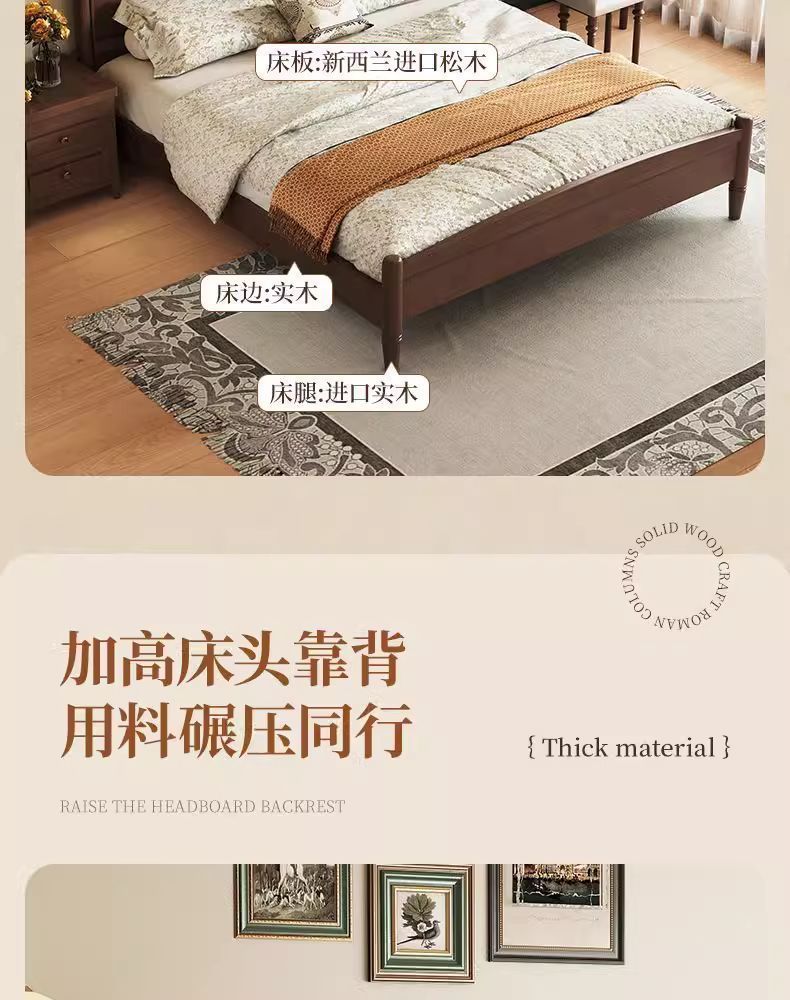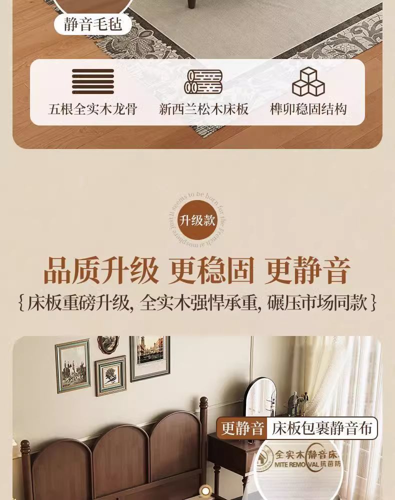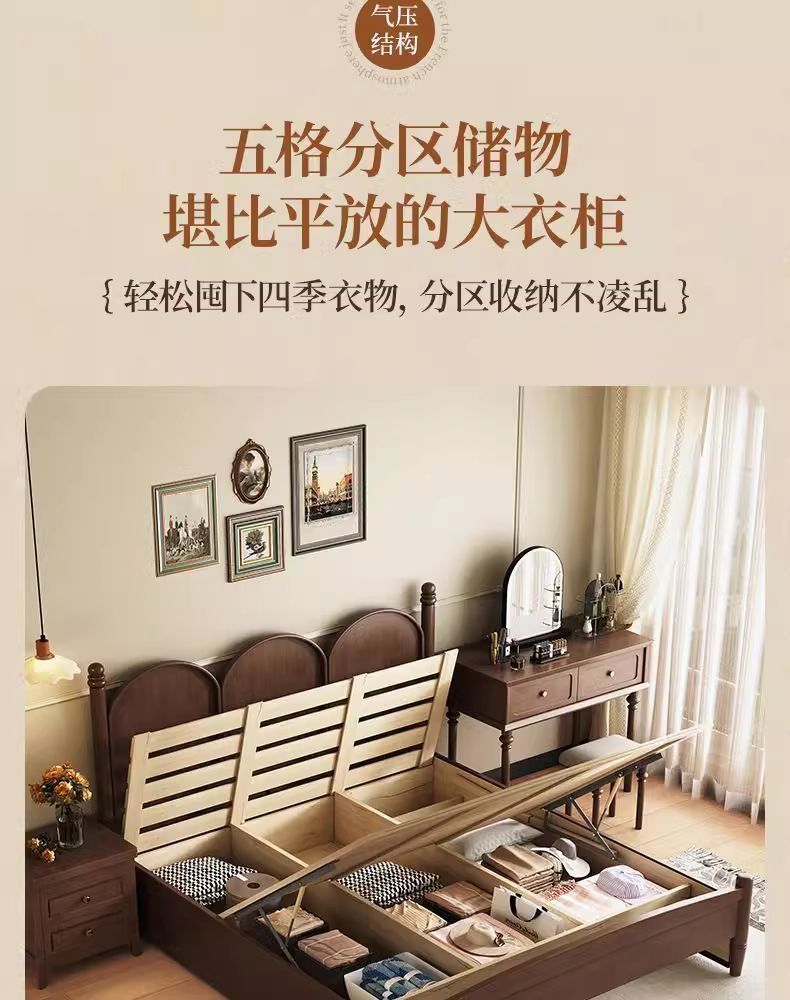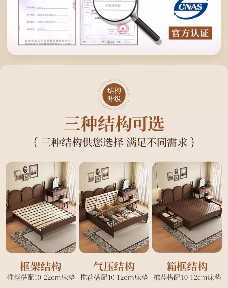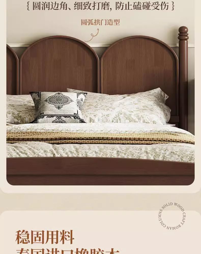 북유럽 단단한 나무 침대 현대 간단한 1.5M1.8M 더블 침대 중세 스타일 침대 마스터 침실 프랑스 복고풍 침대 작은 아파트스토어 가기