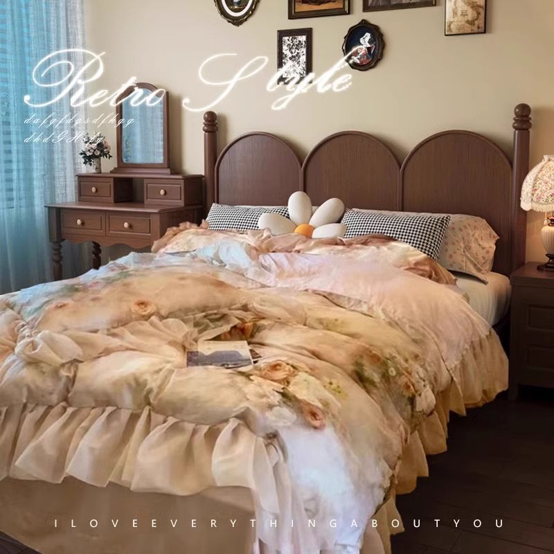 북유럽 단단한 나무 침대 현대 간단한 1.5M1.8M 더블 침대 중세 스타일 침대 마스터 침실 프랑스 복고풍 침대 작은 아파트