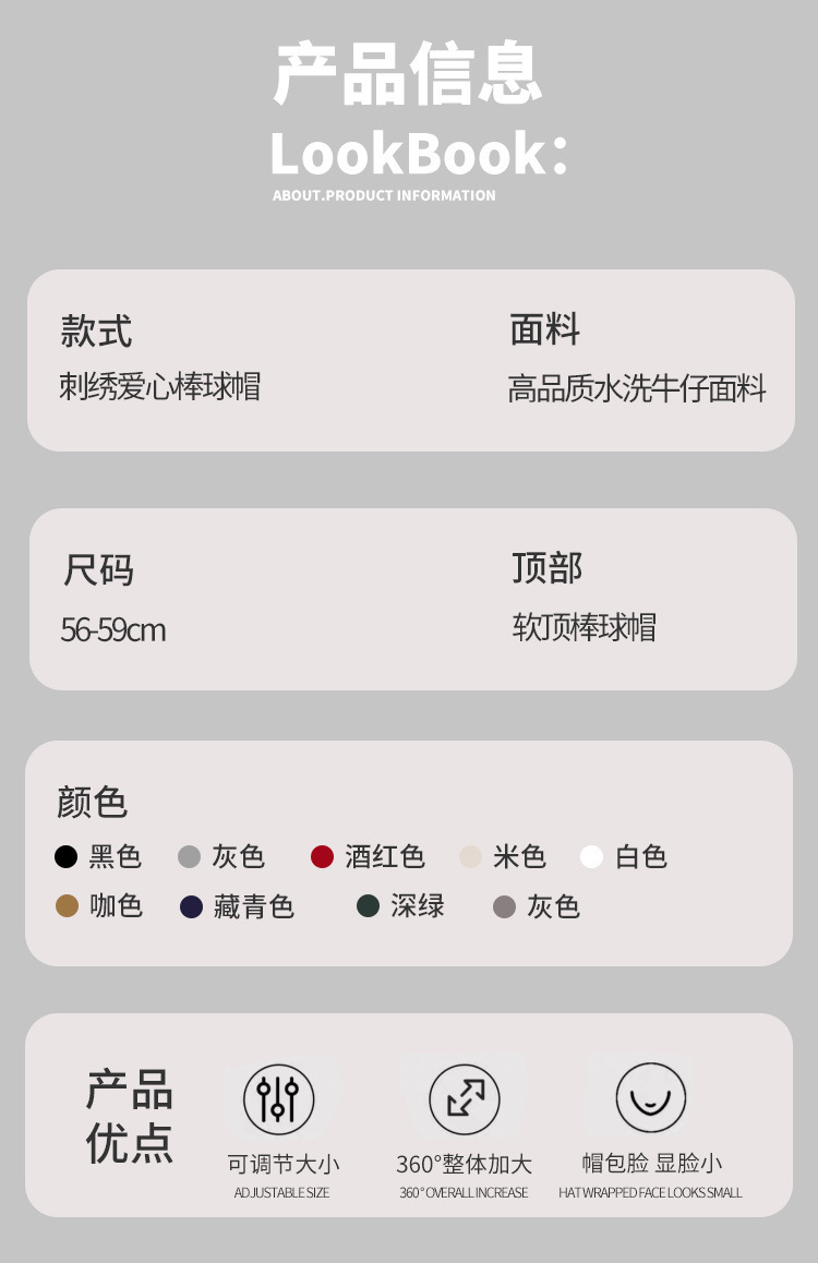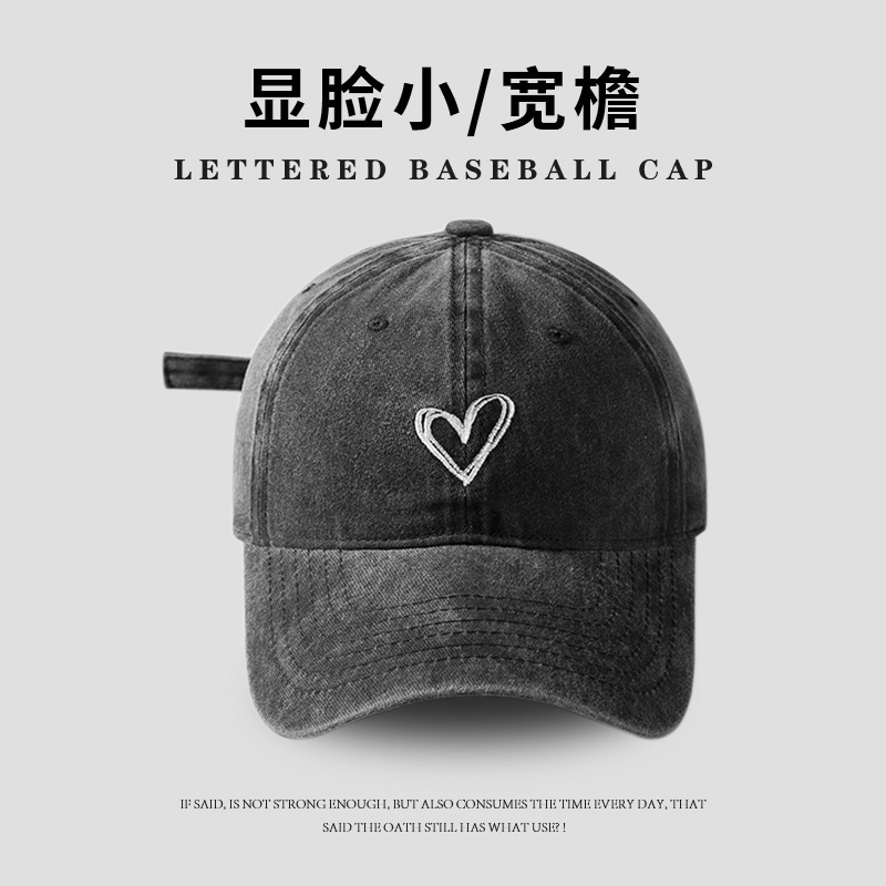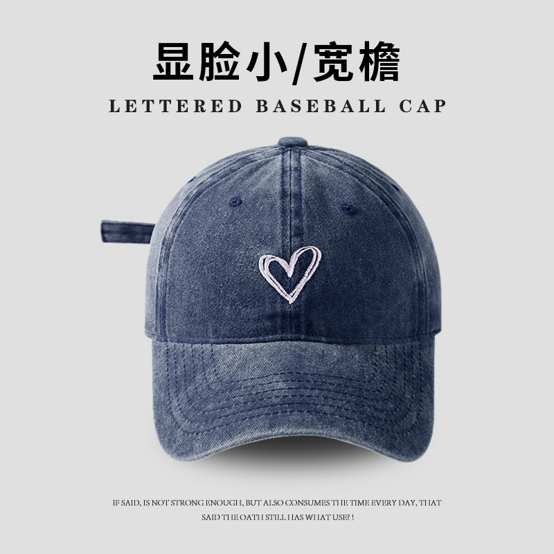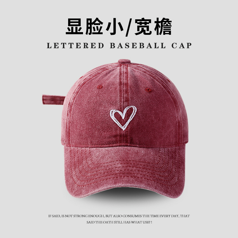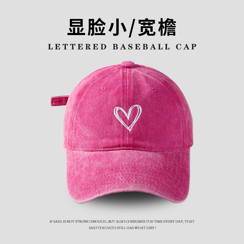 다용도 복숭아 하트 자수 워싱 및 디스트레스드 봄 여름 여성용 야구 모자 한국식 얇은 커플 소프트 탑 피크 캡 크로스보더스토어 가기