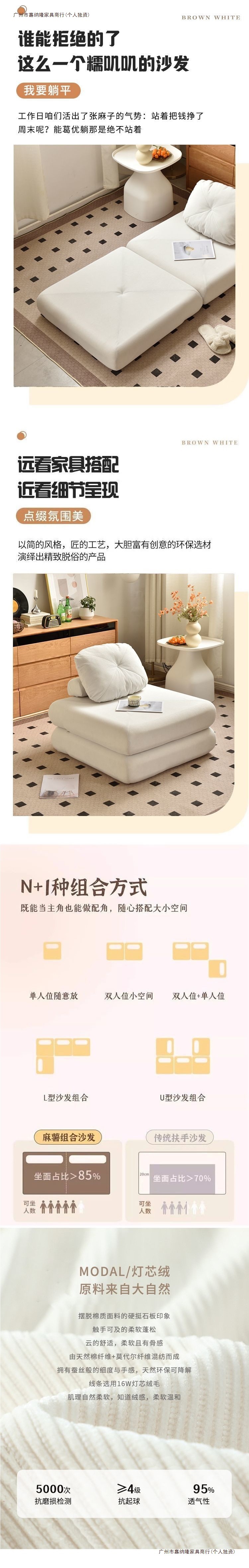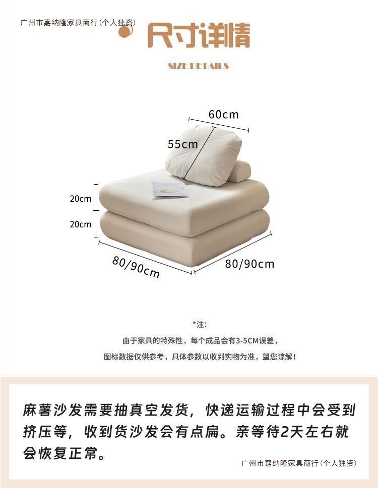 게으른 소파 두부 블록 소파 베드 작은 아파트 발코니 싱글 다다미 거실 패브릭 소파 분리 및 세탁 가능한 모찌스토어 가기