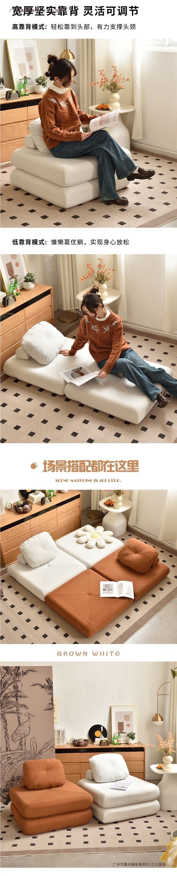게으른 소파 두부 블록 소파 베드 작은 아파트 발코니 싱글 다다미 거실 패브릭 소파 분리 및 세탁 가능한 모찌