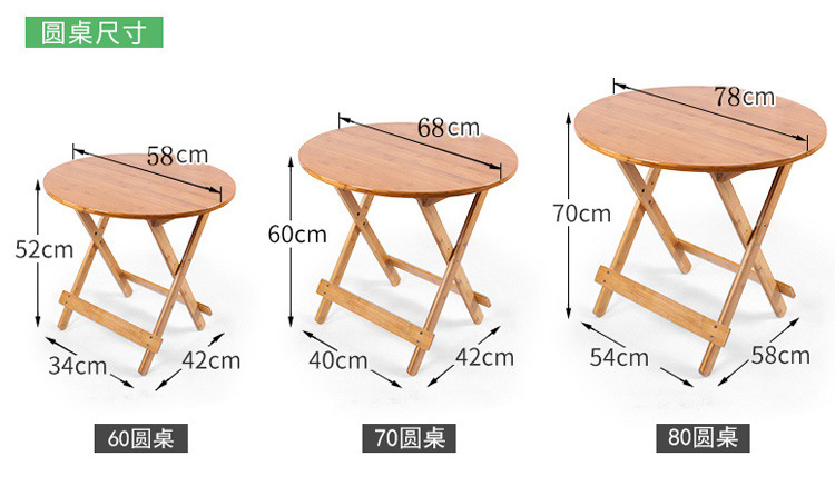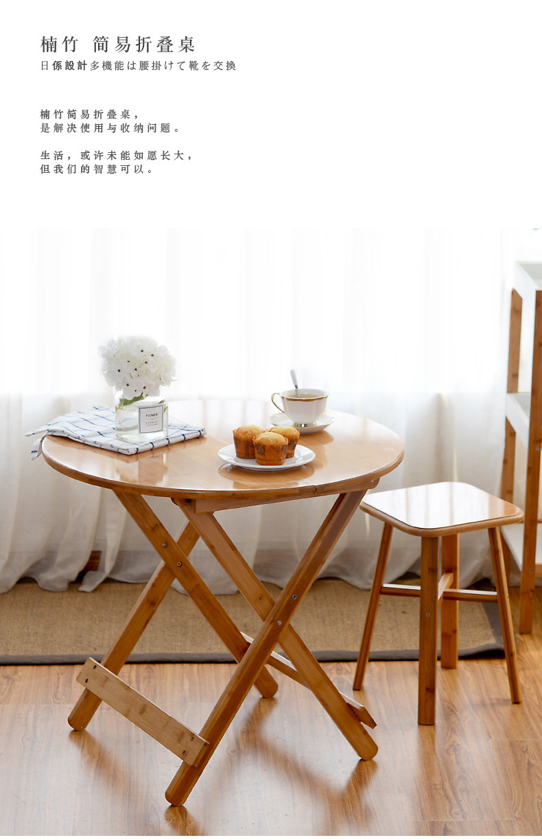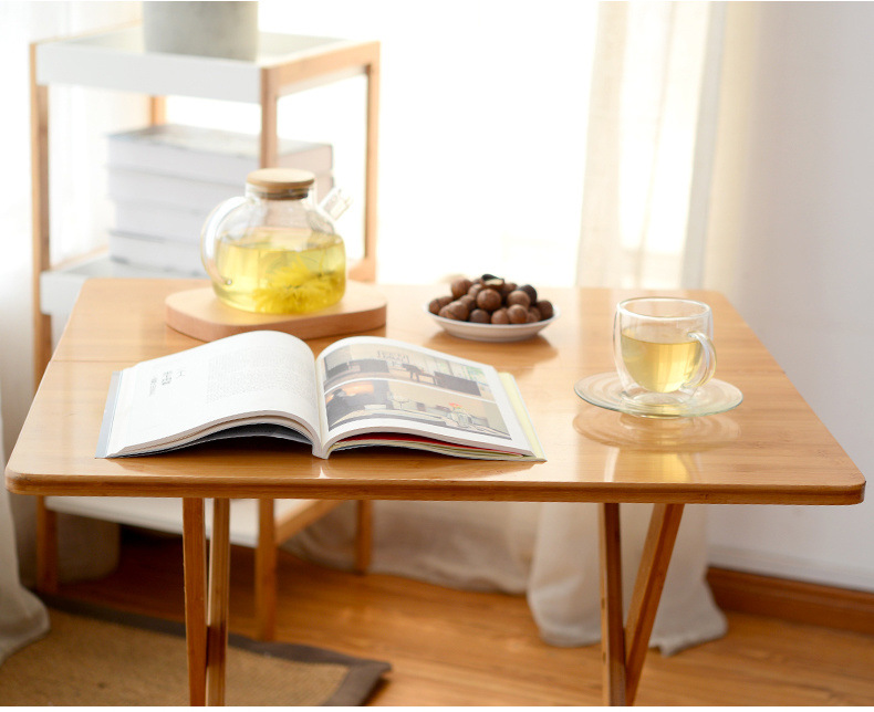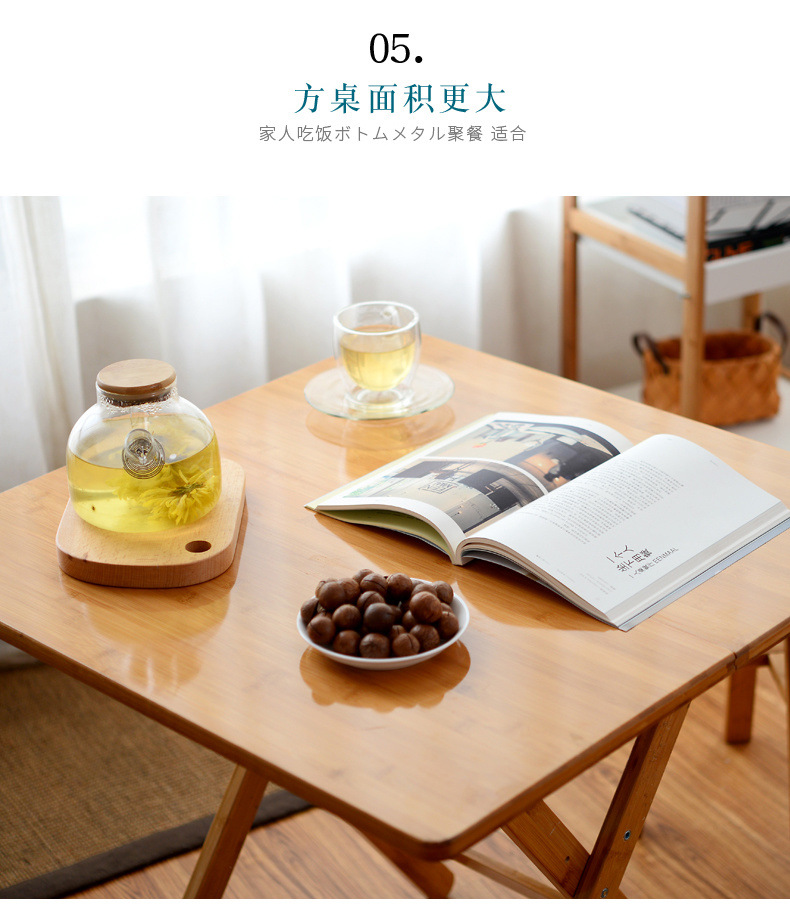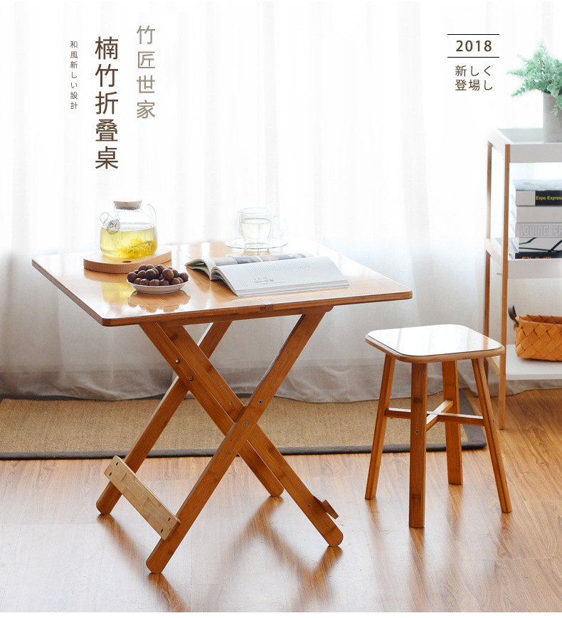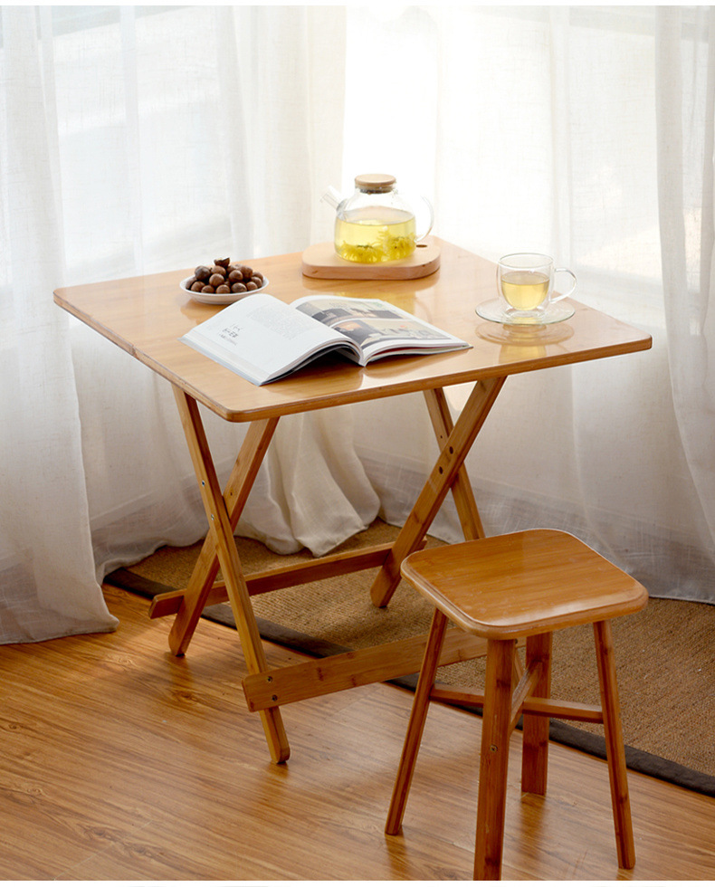 Bamboo 접이식 테이블 휴대용 작은 테이블 간단한 접이식 식탁 작은 아파트 식탁 단단한 나무 사각형 테이블 사각형 가정용스토어 가기