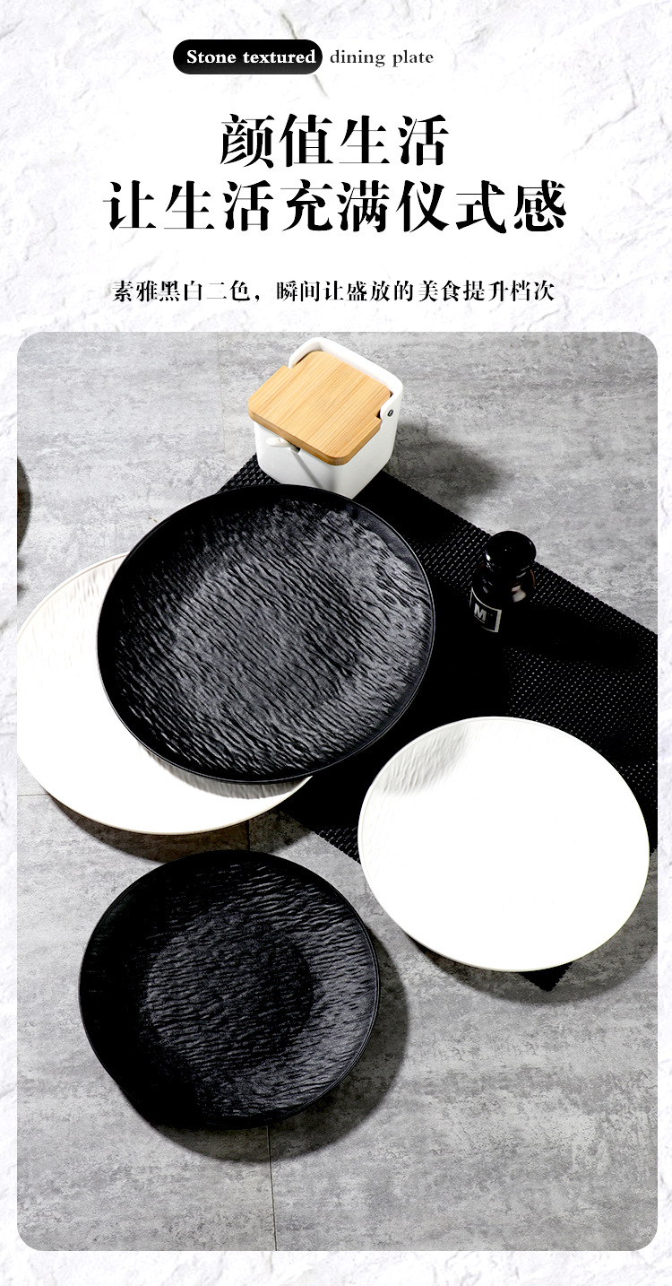 고급 록 패턴 스테이크 디너 플레이트, 창의적인 서양 음식 디너 플레이트, 일본식 접시, 가정용 플라스틱 샐러드 플레이트, 스타일리쉬스토어 가기