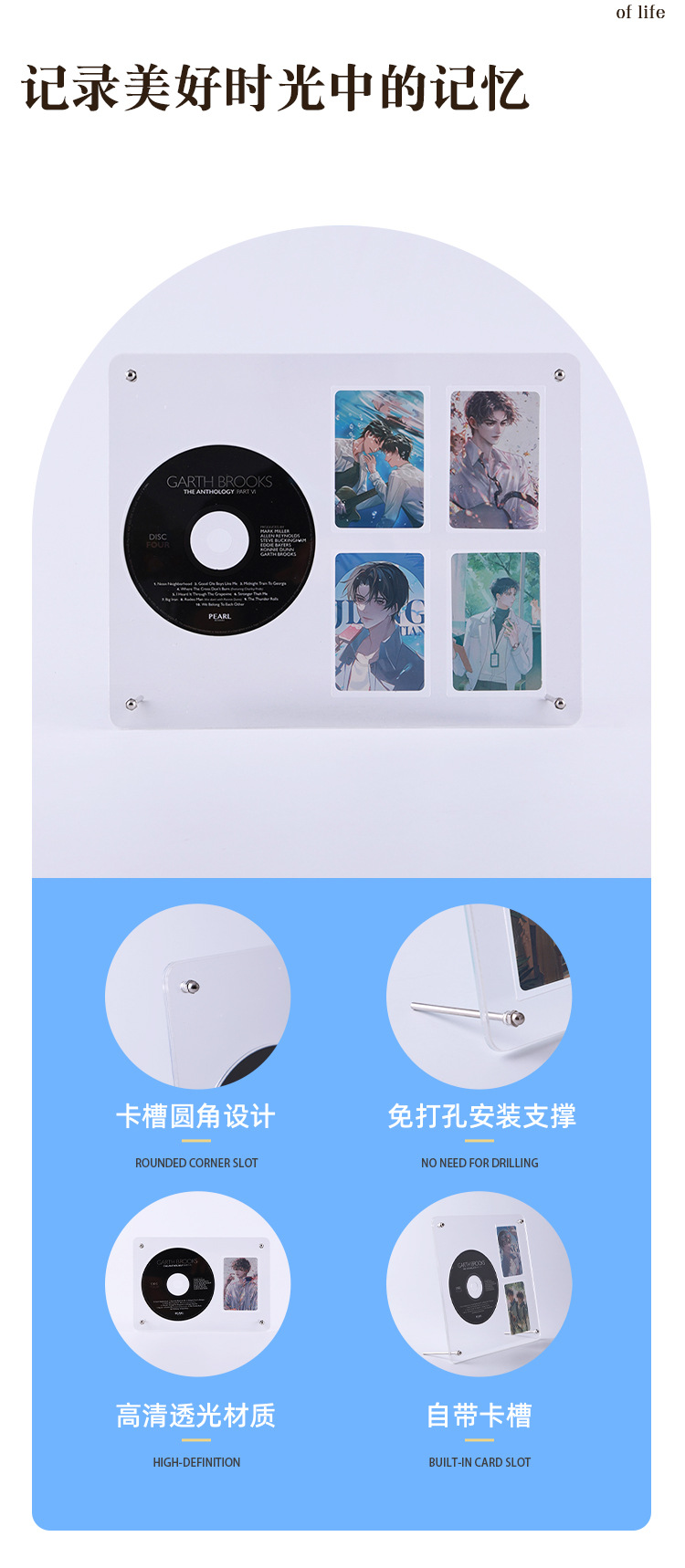 투명 아크릴 CD 카드 디스플레이 스탠드 아이돌 레코드 사진 프레임 그루브 카드 벽돌 데스크탑 테이블 앨범 보관 상자스토어 가기