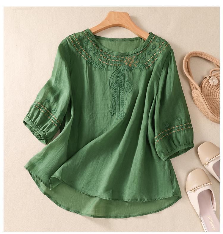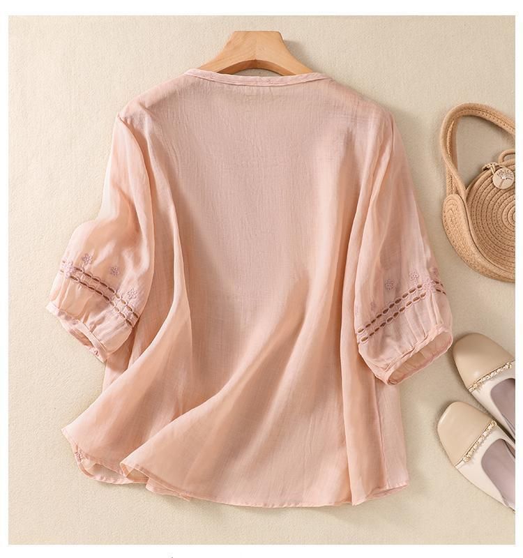 면과 린넨 자수 반팔 탑 패션 슈트 2025 여름 신작 바지 캐주얼 와이드 팬츠 투피스 여성복스토어 가기