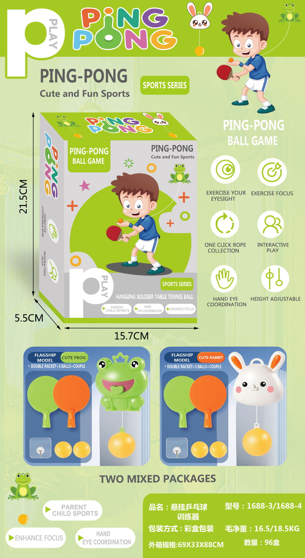 • 개구리 [라켓 2개 + 탁구공 3개] 영문/컬러 박스 포장