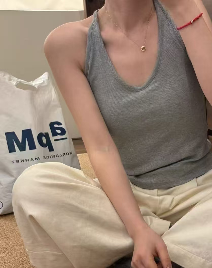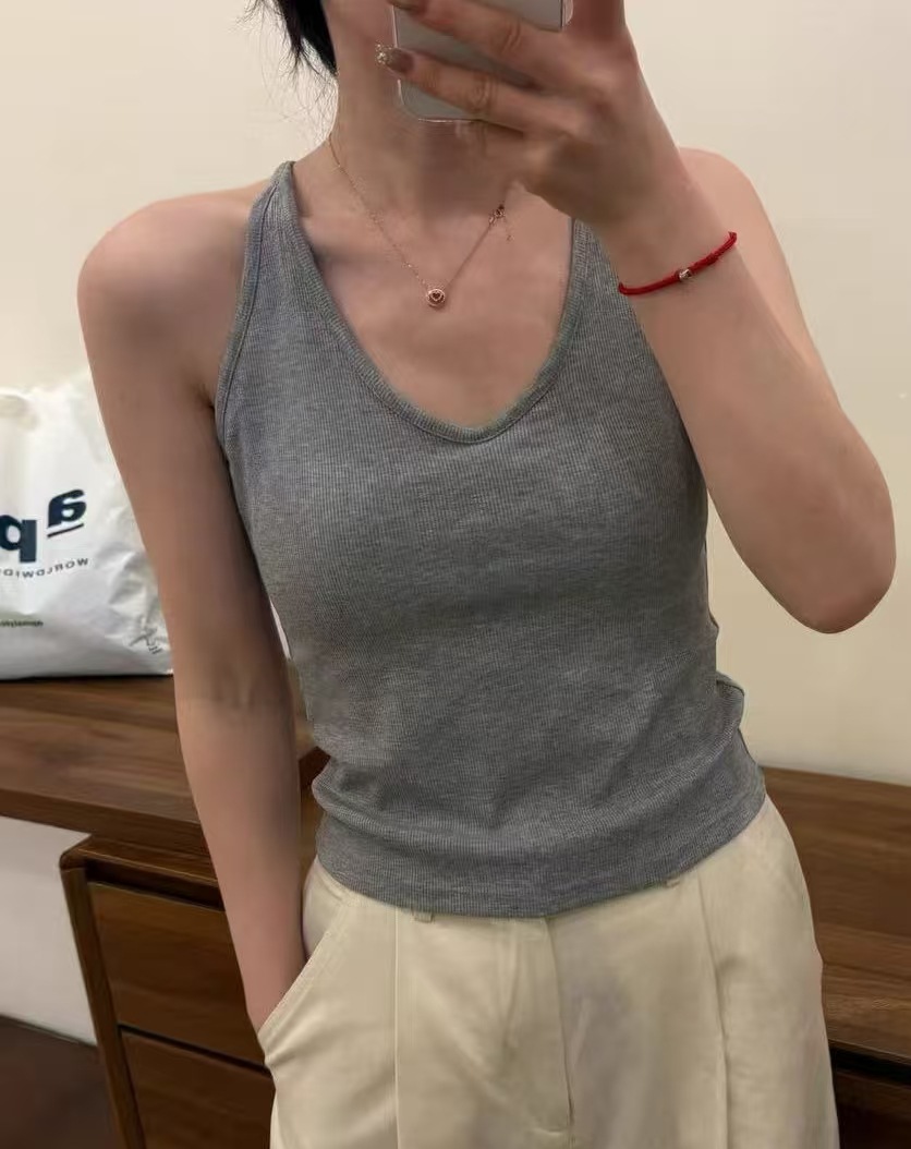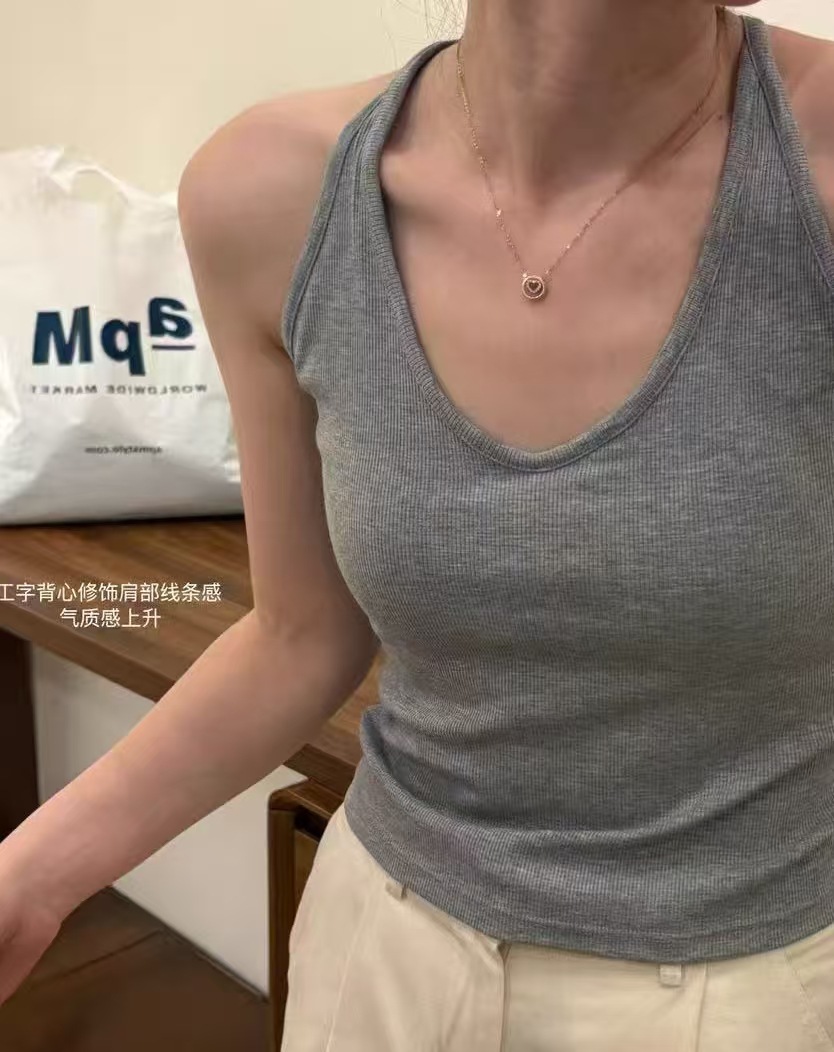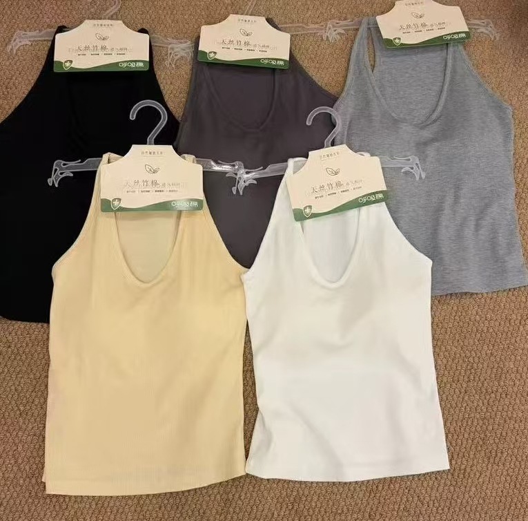 Fengzhixin 2025 Tencel Bamboo Cotton I-Shaped Camisole Fixed Cup 여성용 이너웨어 및 아우터웨어 미니멀리스트 바텀 셔츠 인스토어 가기