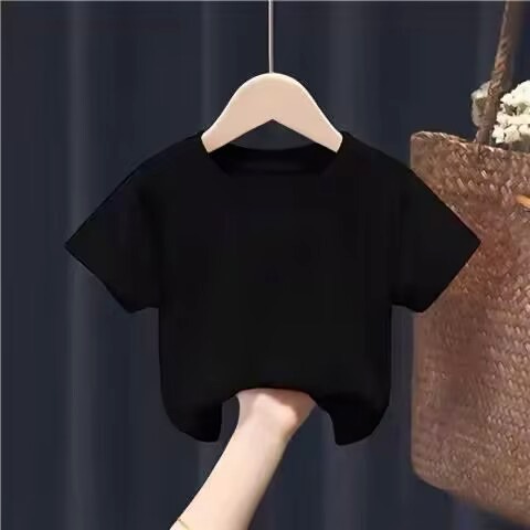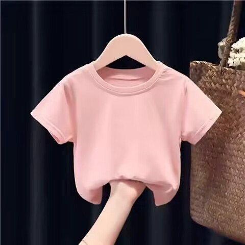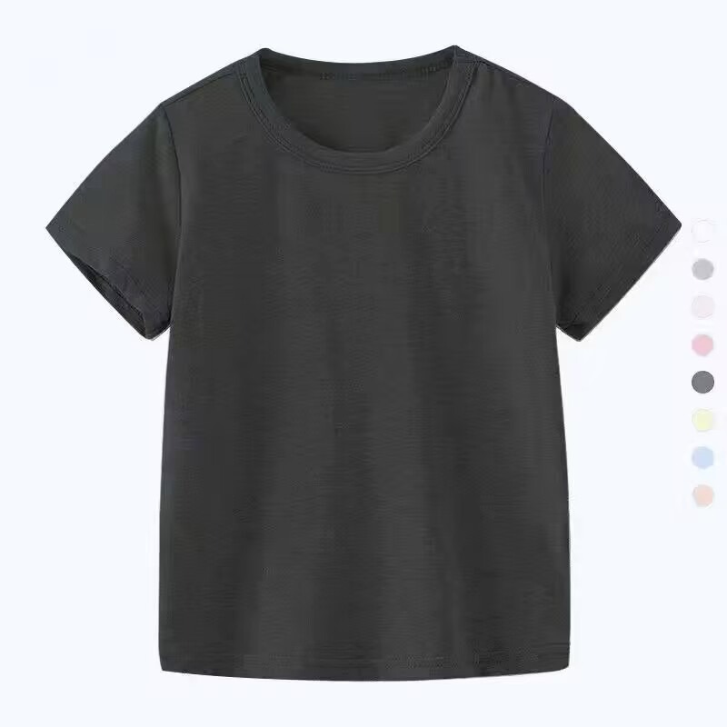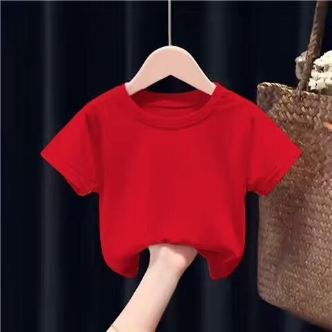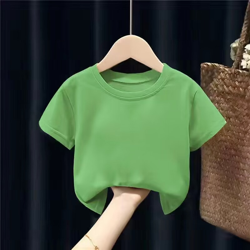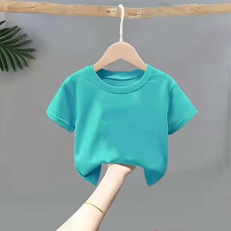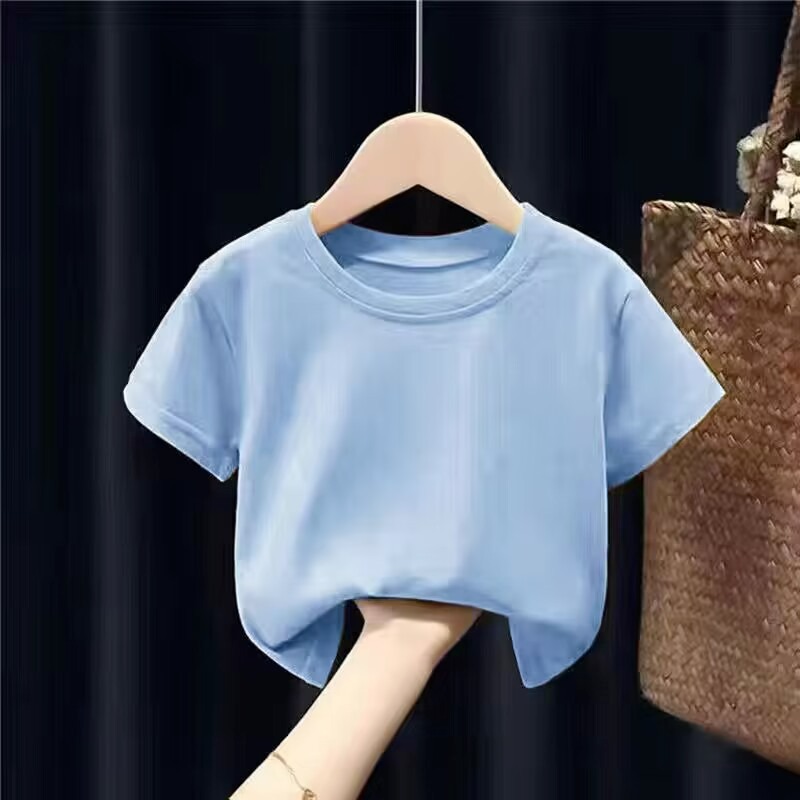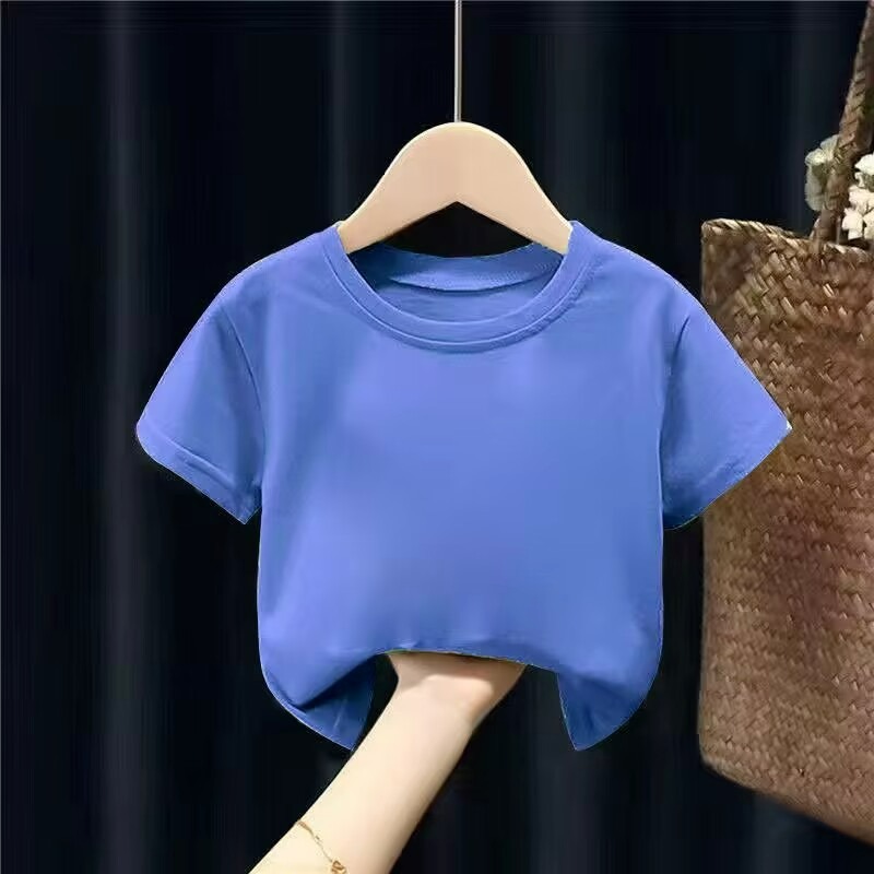 여름 아동복 라운드 넥 티셔츠 단색 아동 반팔 학생 클래스 유니폼 반팔 빈 옷 단색 반팔 사용자 정의 가능스토어 가기