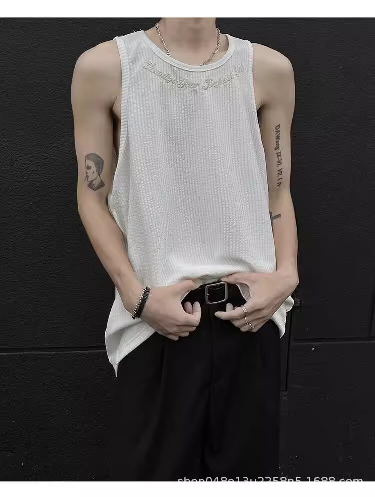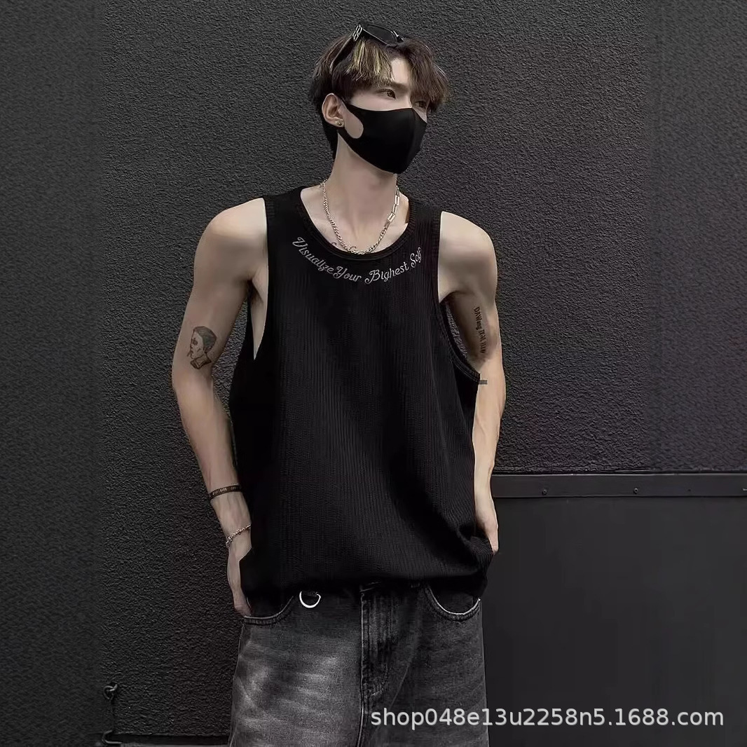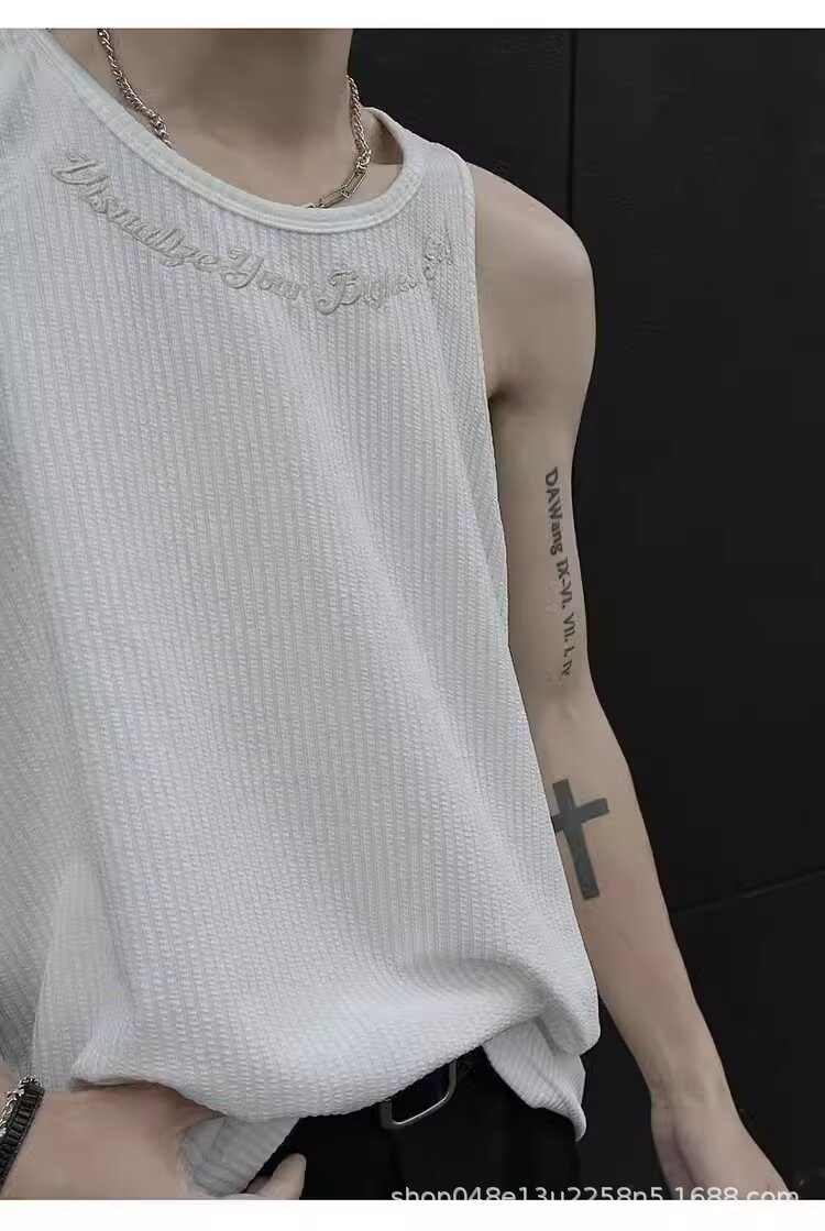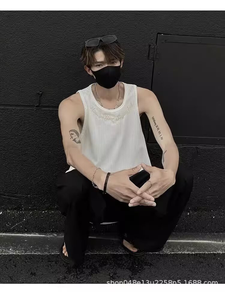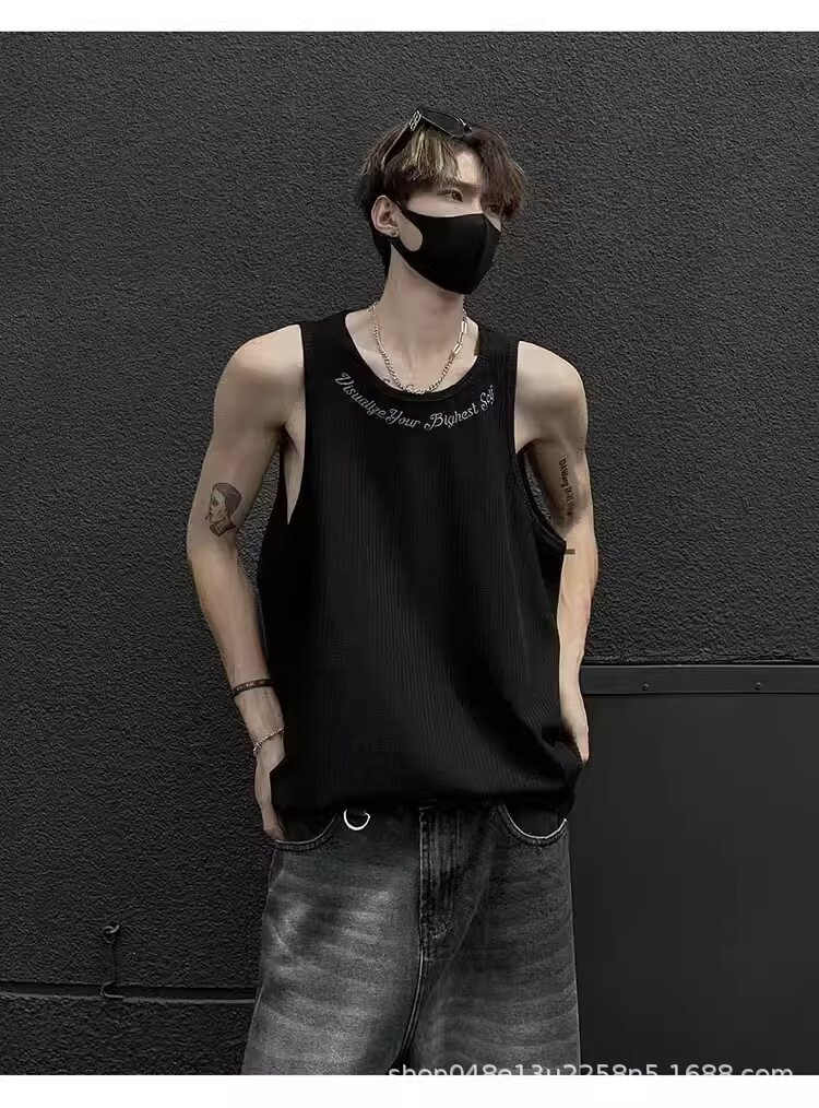 아메리칸 스타일 페이크 투피스 조끼 남성 트렌디 여름 남녀 커플 민소매 티셔츠 핸섬 스포츠 조끼 반팔