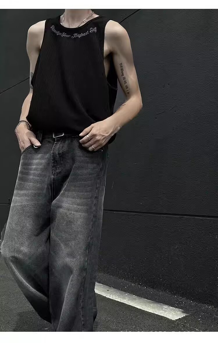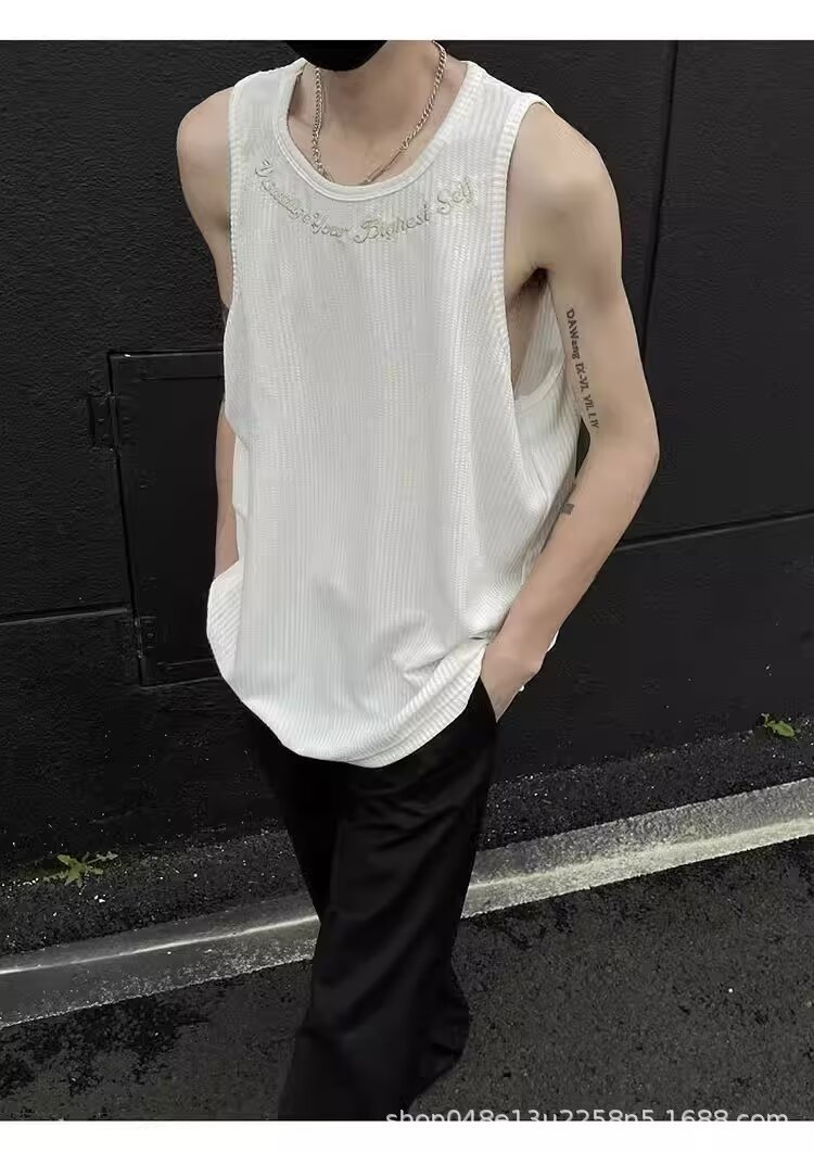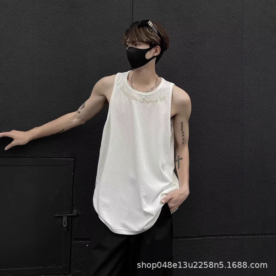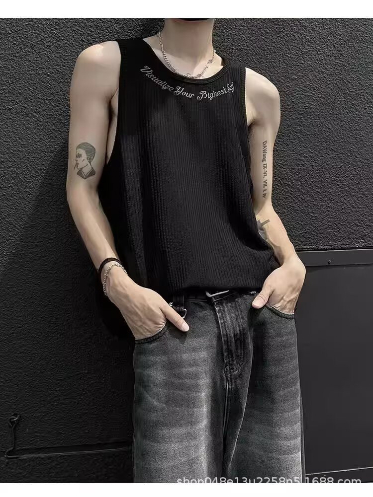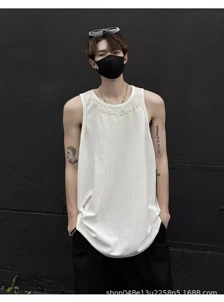 아메리칸 스타일 페이크 투피스 조끼 남성 트렌디 여름 남녀 커플 민소매 티셔츠 핸섬 스포츠 조끼 반팔