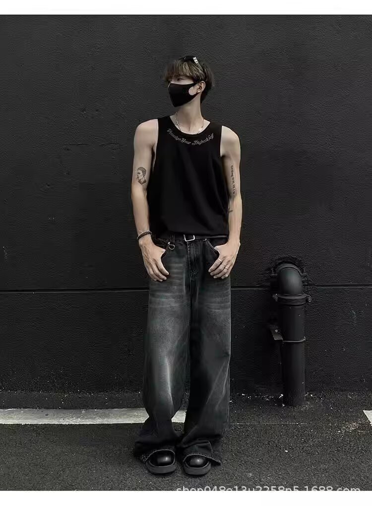 아메리칸 스타일 페이크 투피스 조끼 남성 트렌디 여름 남녀 커플 민소매 티셔츠 핸섬 스포츠 조끼 반팔스토어 가기