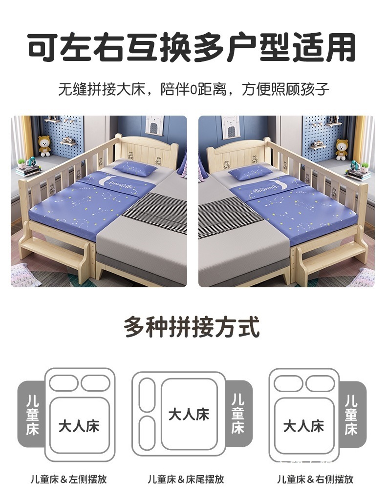 넓은 침대, 침대 옆에 붙이는 원목 어린이 침대, 가드레일이 있는 침대, 추가 침대, 접이식 침대, 아기 침대, 소형 침대, 대형 침대, 침대 연결 도구