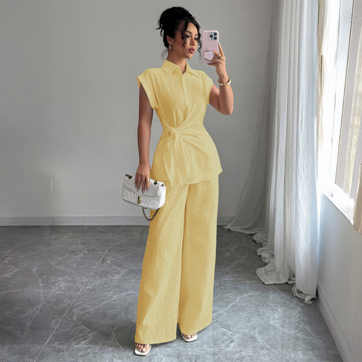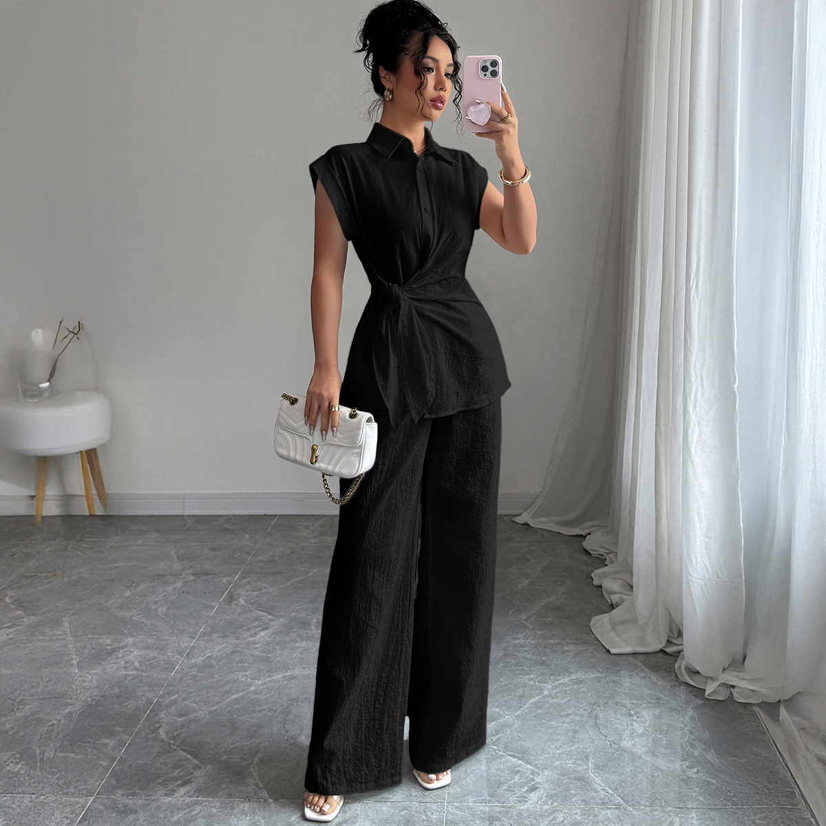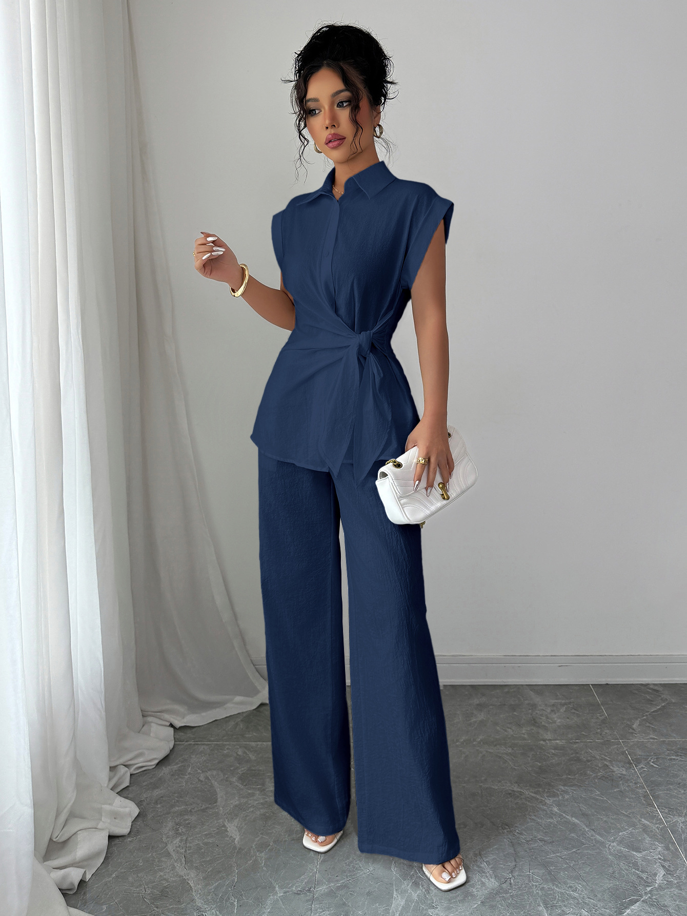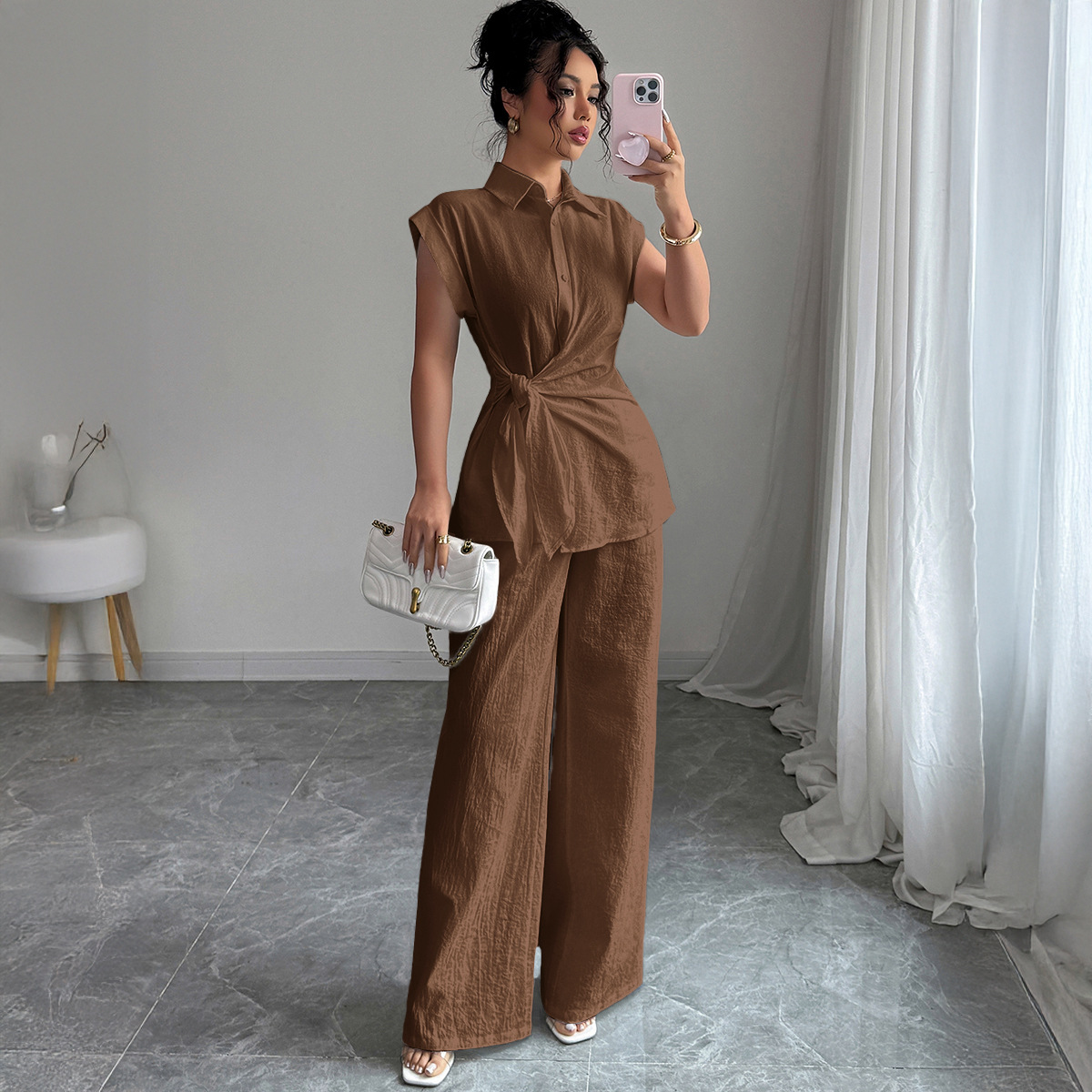 국경 간 유럽과 미국의 우아하고 고급스러운 반팔 조끼와 바지 여성 정장 여성 의류 2025 봄 여름 Amazon 독립 스테이션스토어 가기