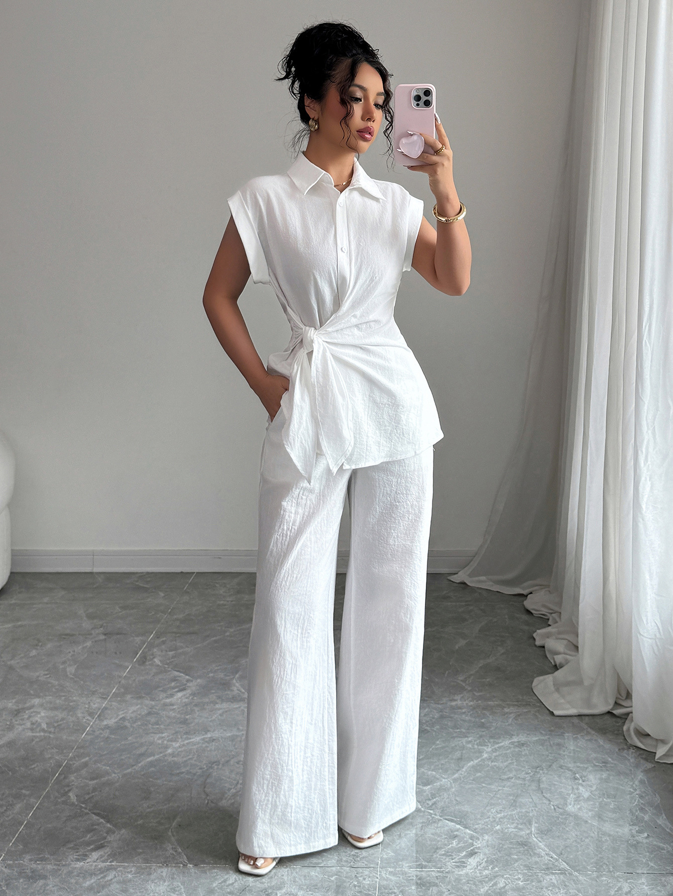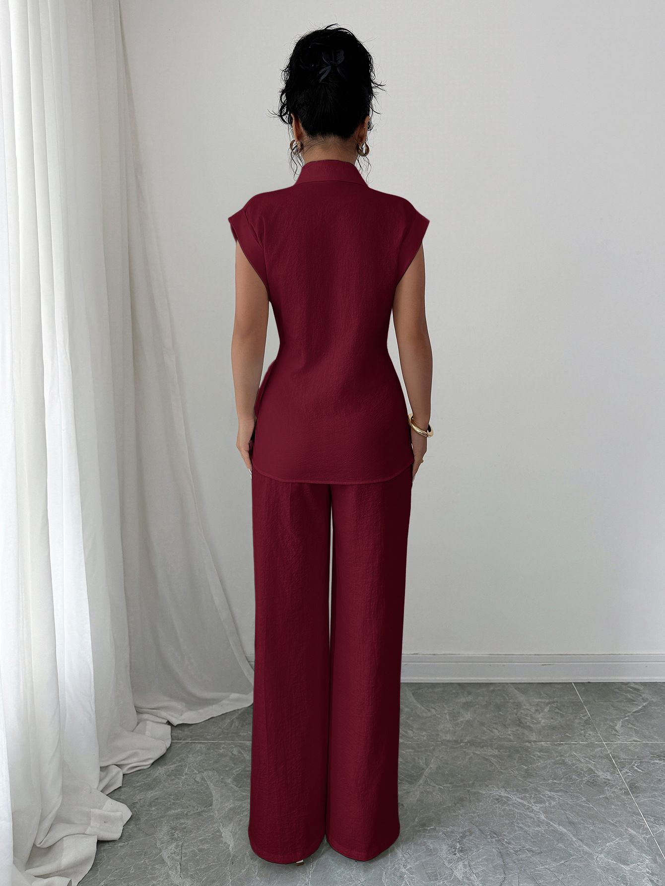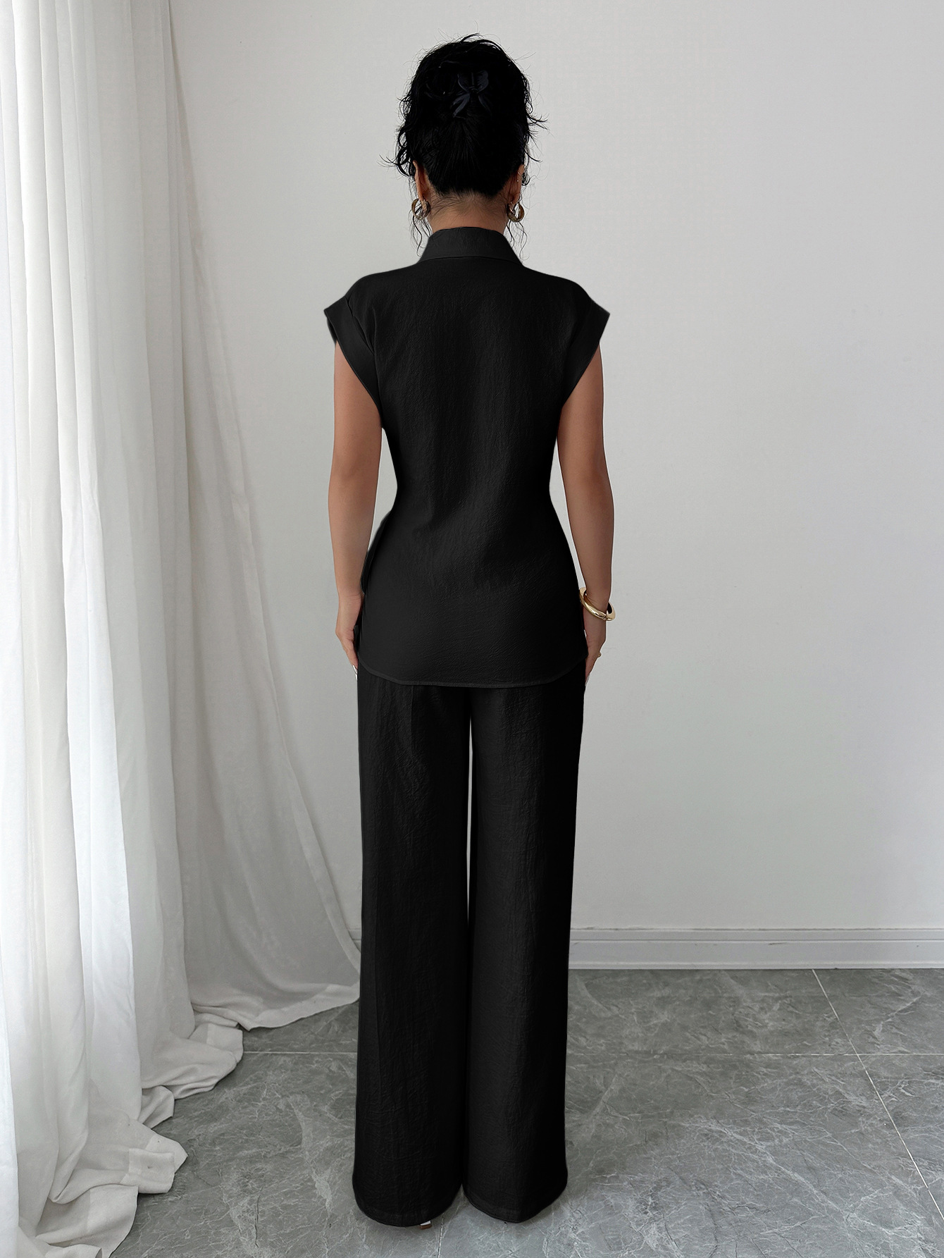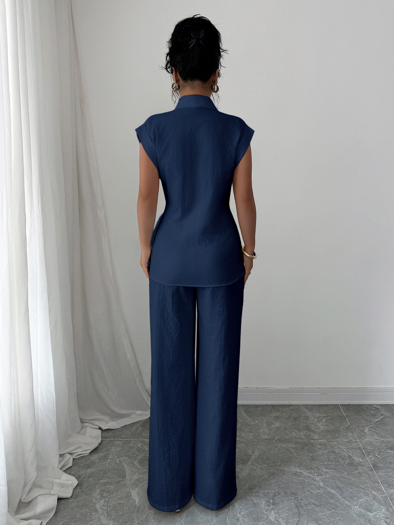 국경 간 유럽과 미국의 우아하고 고급스러운 반팔 조끼와 바지 여성 정장 여성 의류 2025 봄 여름 Amazon 독립 스테이션스토어 가기