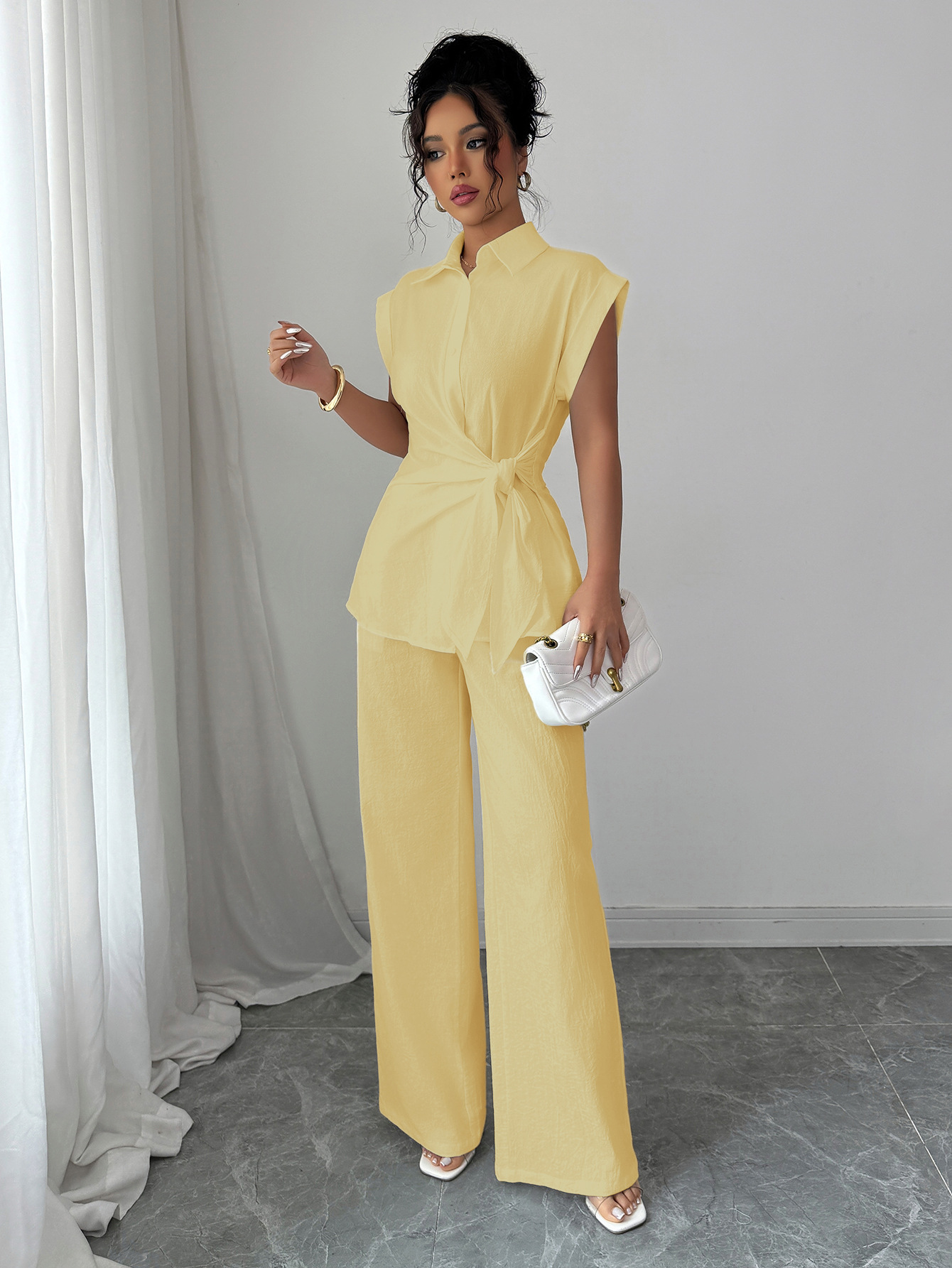 국경 간 유럽과 미국의 우아하고 고급스러운 반팔 조끼와 바지 여성 정장 여성 의류 2025 봄 여름 Amazon 독립 스테이션
