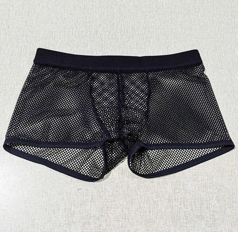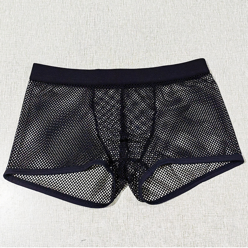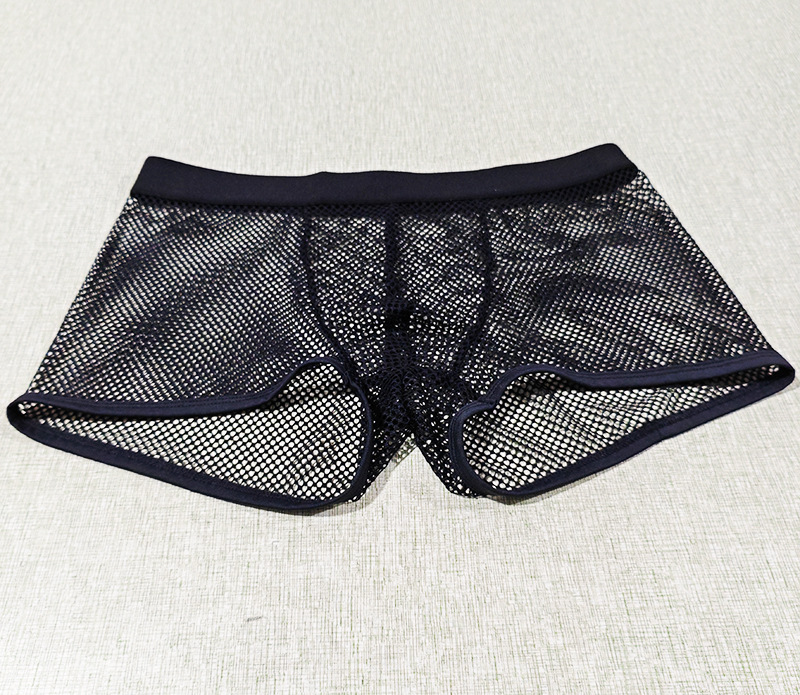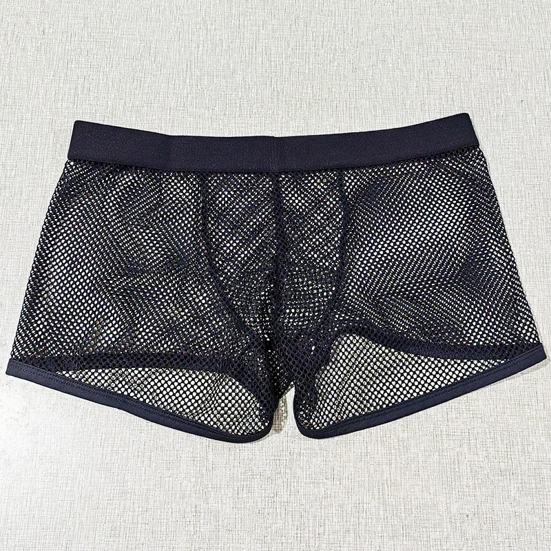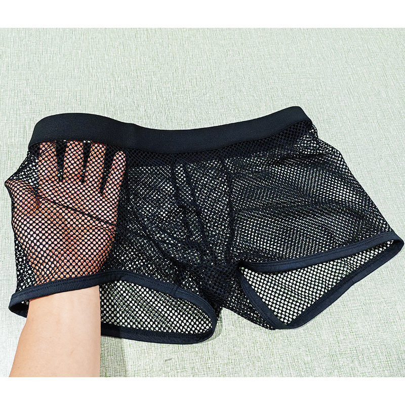 재고 있음 도매 남성 속옷 대형 메쉬 복서 완전 투명 로우 허리 섹시하고 편안하며 통기성이 뛰어난 남성 복서 반바지 dropshipping스토어 가기