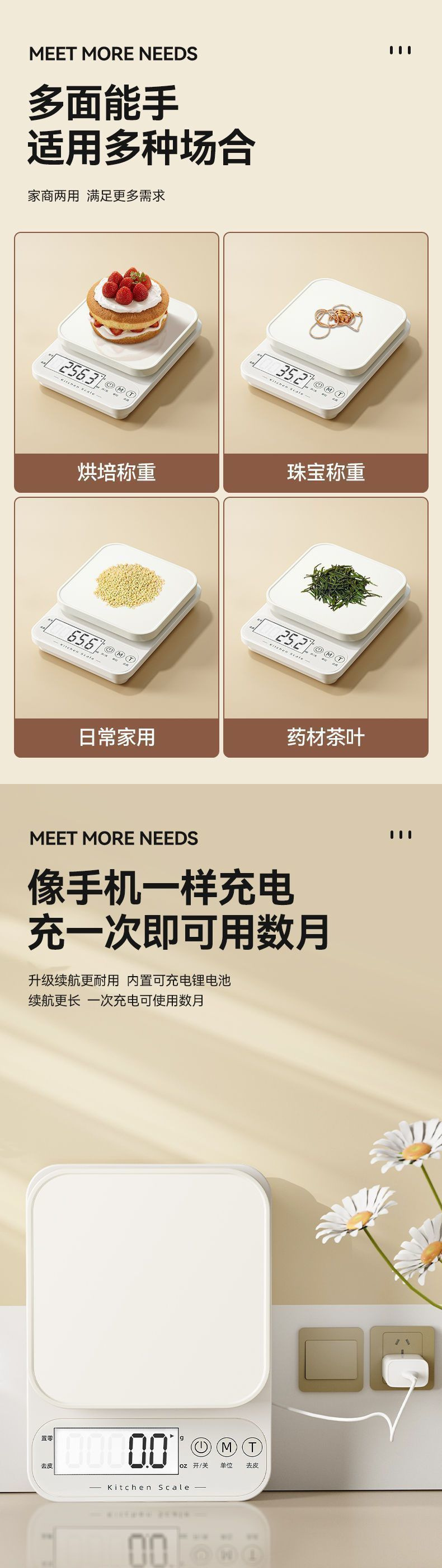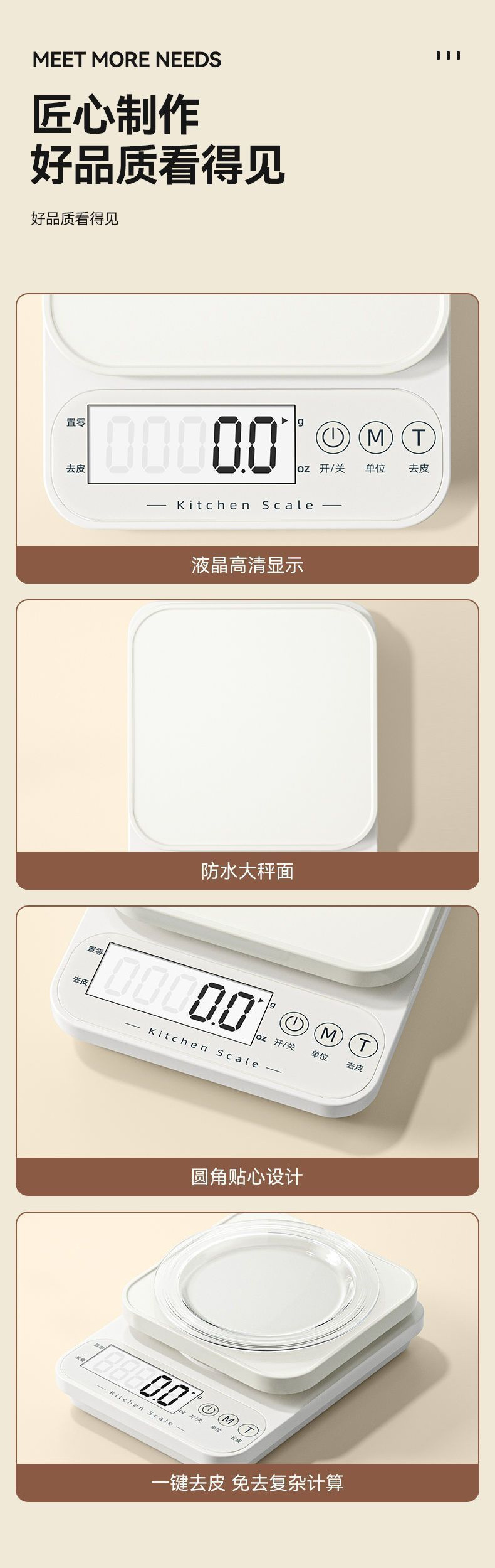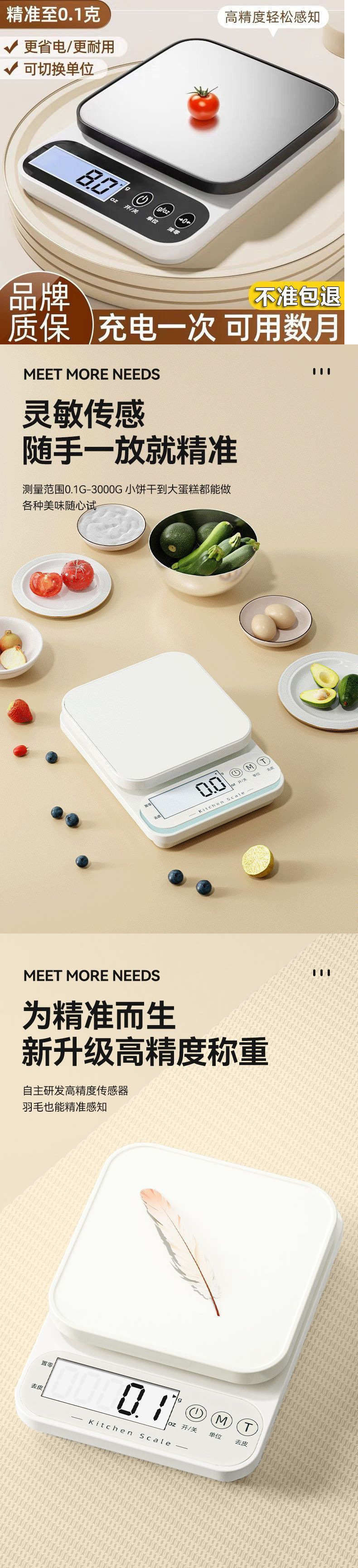 • 스테인레스 스틸 스케일 표면 [8kg 정확도 0.1g] + 스케일 팬