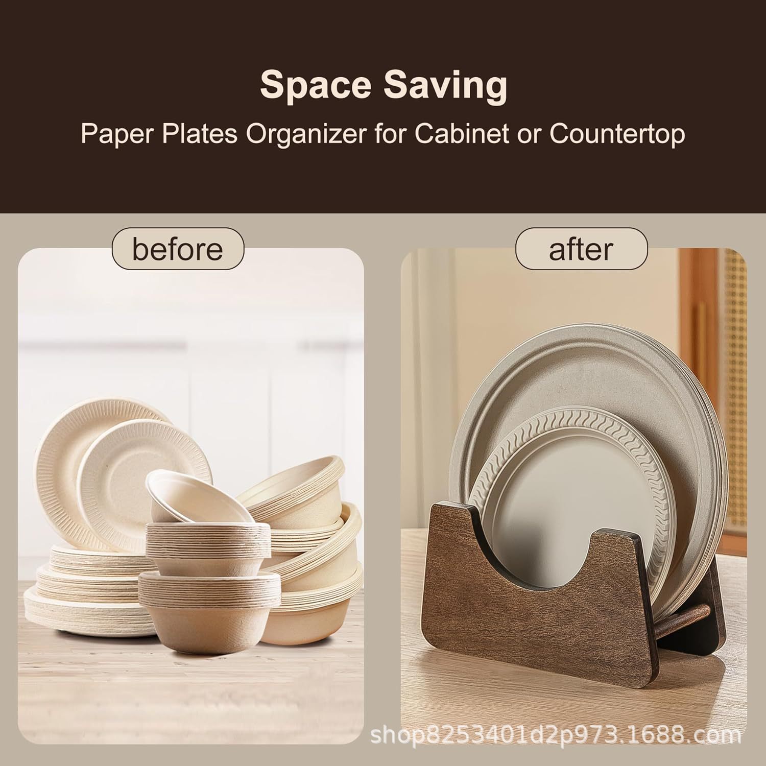 나무 주방 일회용 종이 접시 보관함 캐비닛 케이크 접시 디스펜서 야외 피크닉 종이 접시 보관함스토어 가기