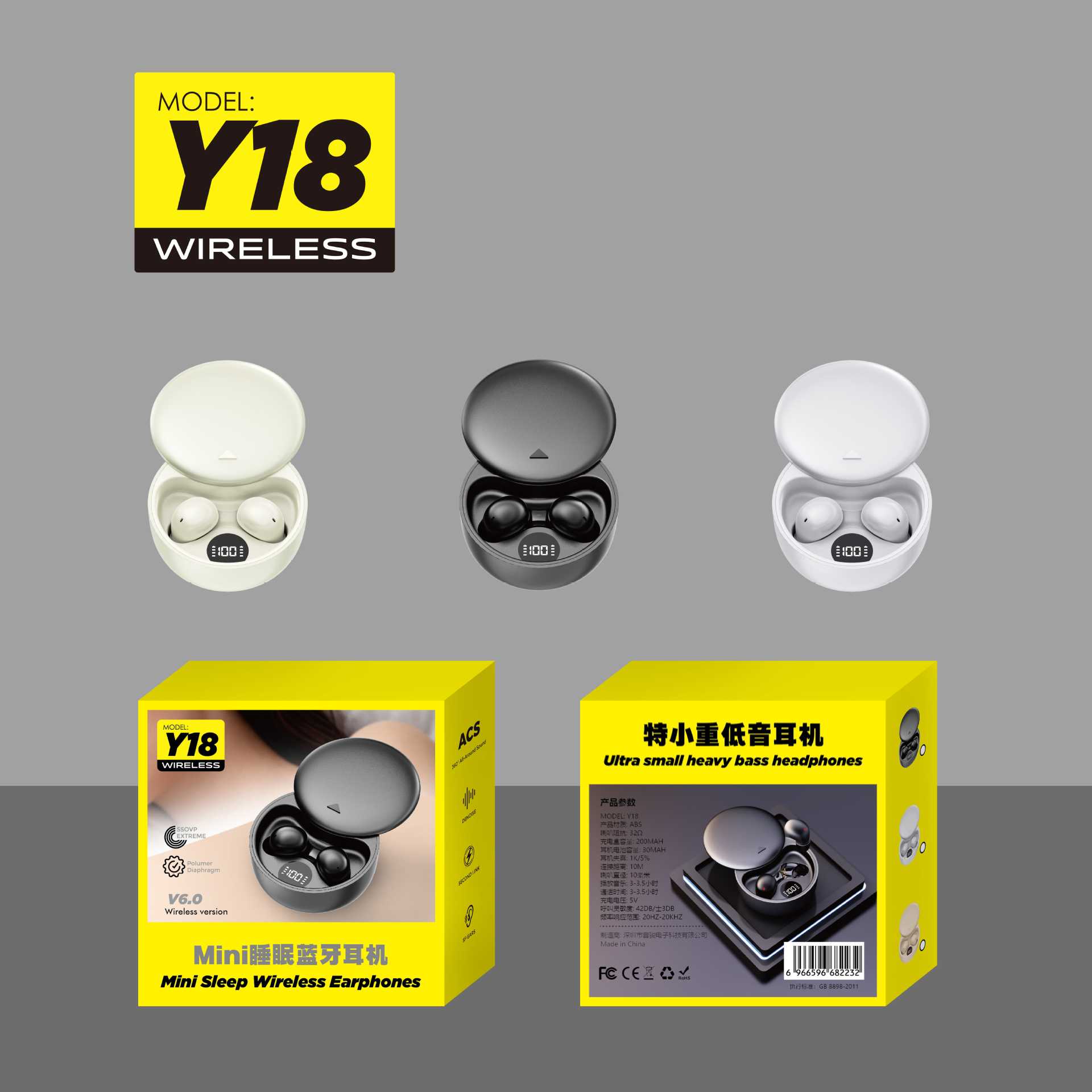 2025년형 신제품 Y18 무선 블루투스 이어폰, 노이즈 캔슬링, 고음질, 수면용, 초장시간 배터리, 개인 맞춤형, 범용