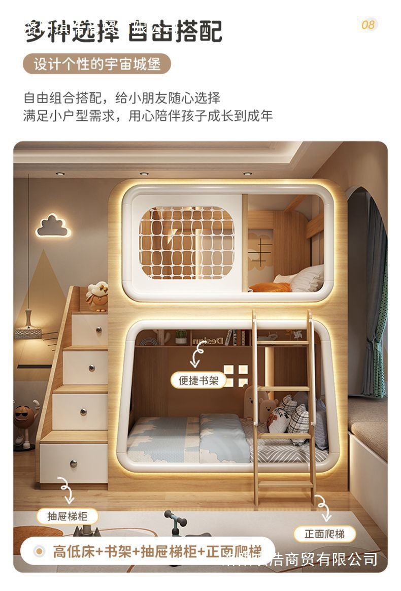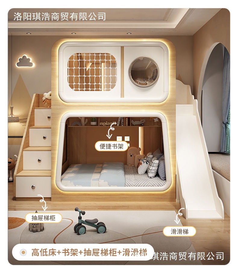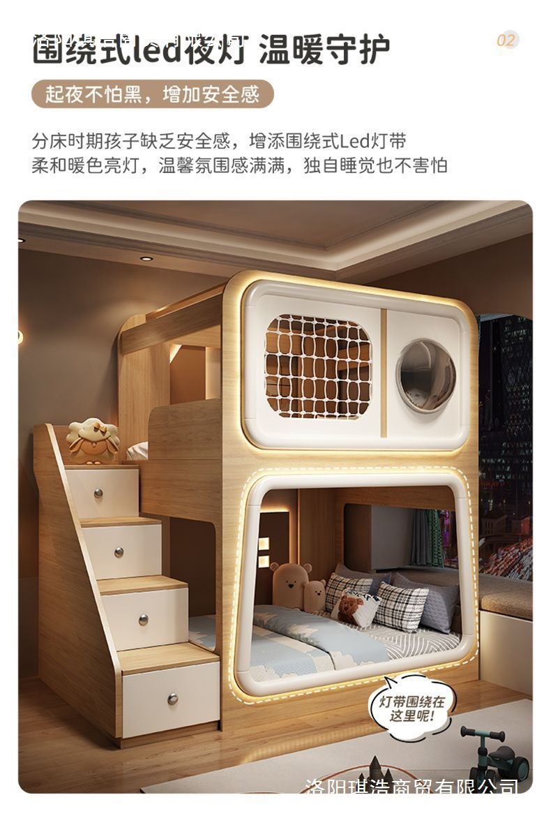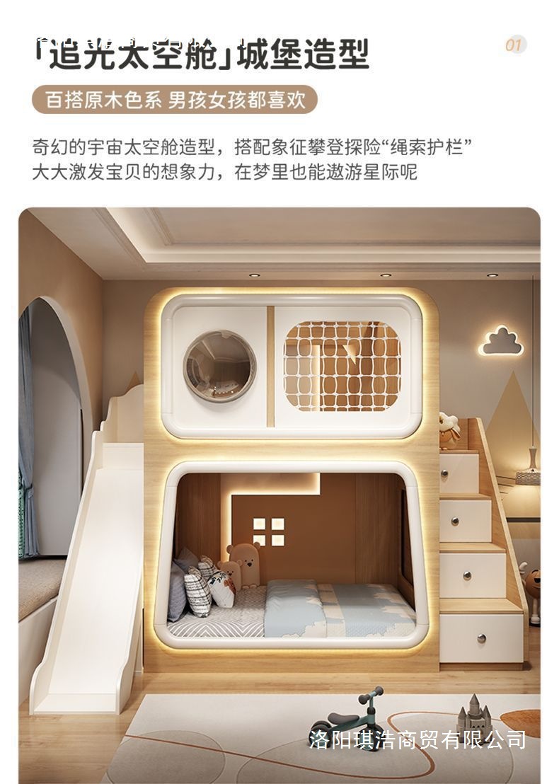 스페이스 캡슐 어린이 가드레일 침대, 소형 침대, 창의적인 이층 침대, 형제와 자매의 높고 낮은 이층 침대