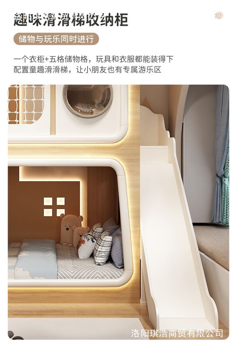 • D 공간 침대 + 사다리 캐비닛 + 슬라이드 + LED 조명