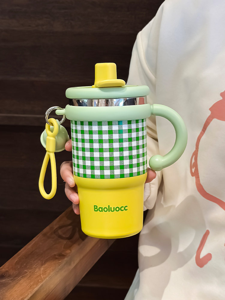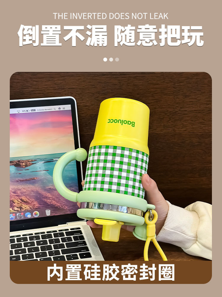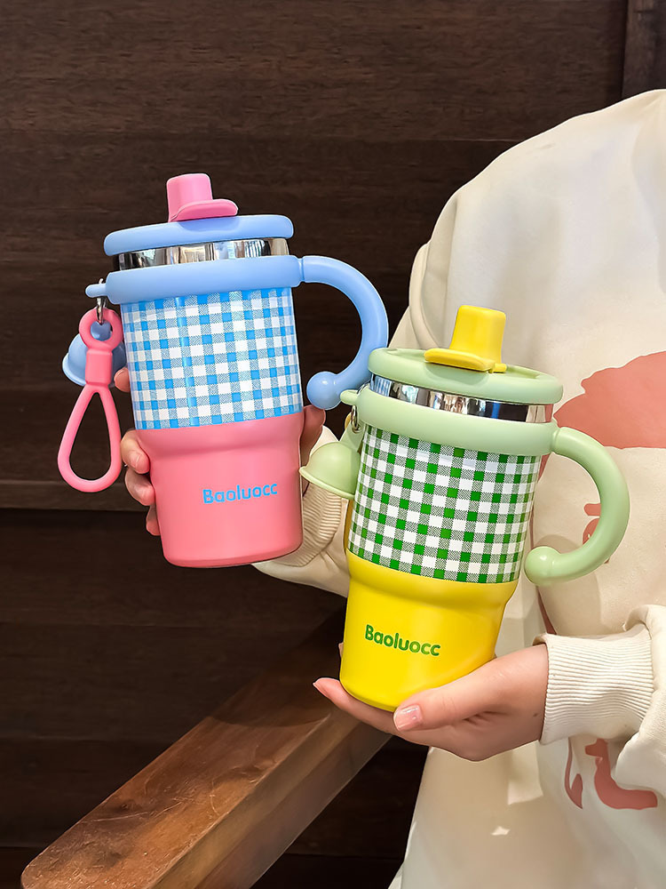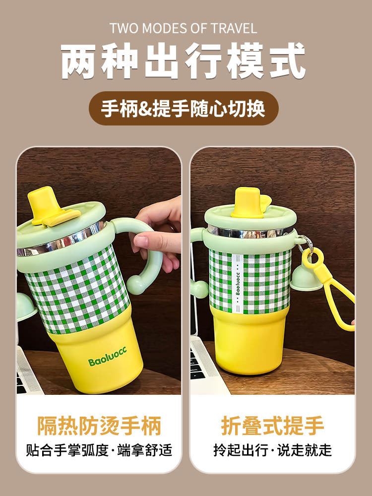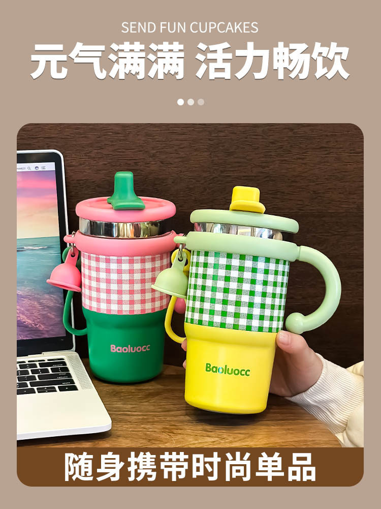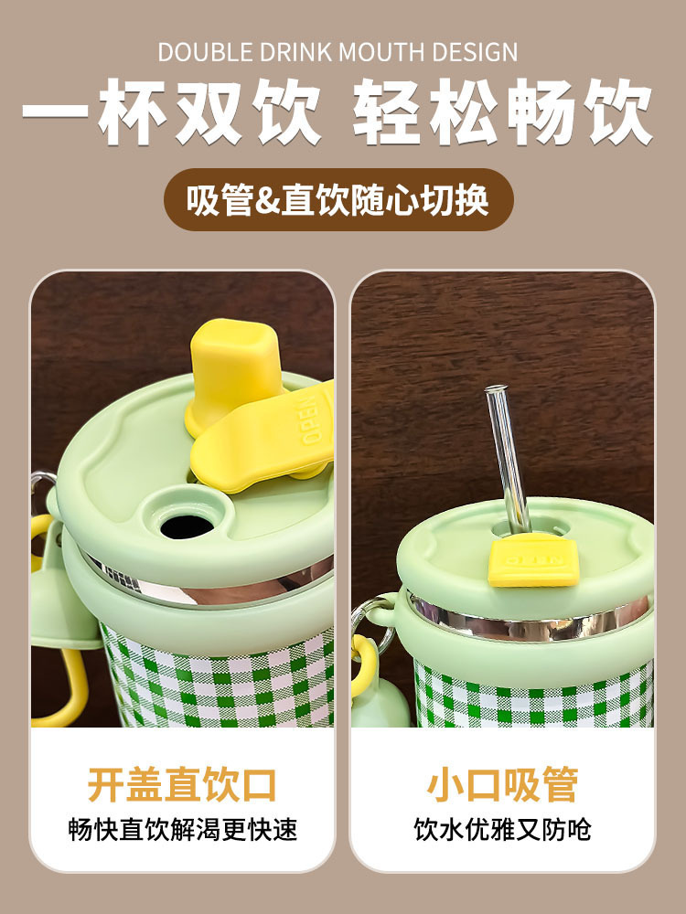 여자 도파민 더블 마시는 밀짚 보온병 컵 316 스테인레스 스틸 컵 손잡이 휴대용 사무실 아이스 컵