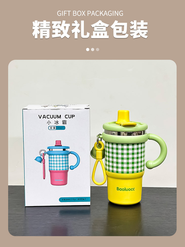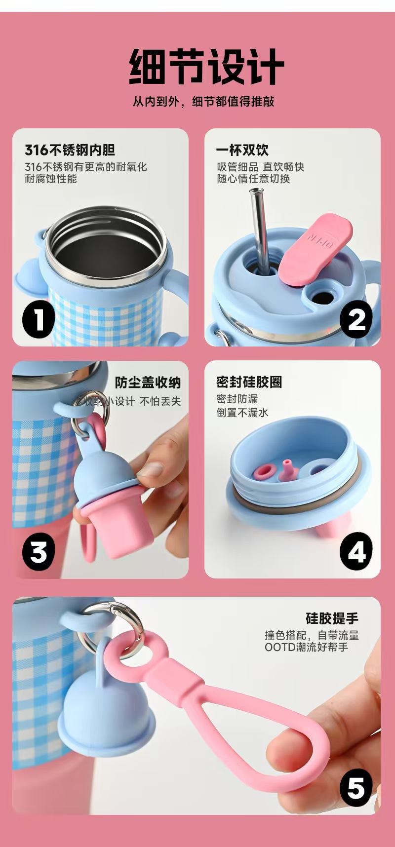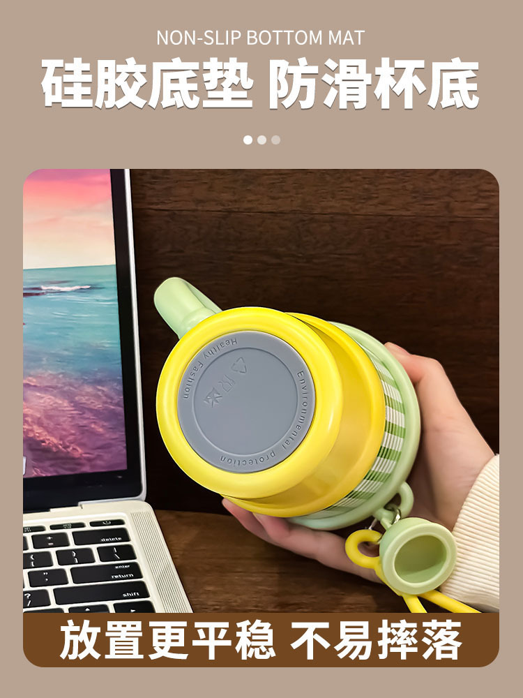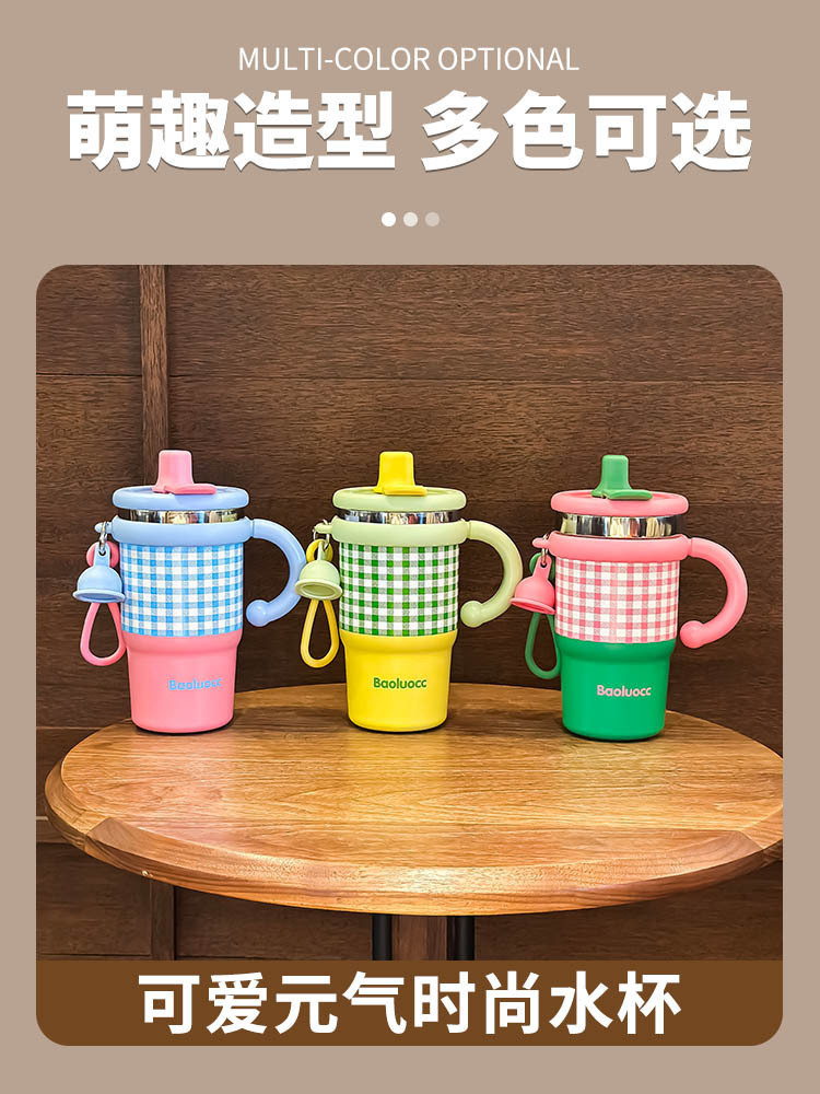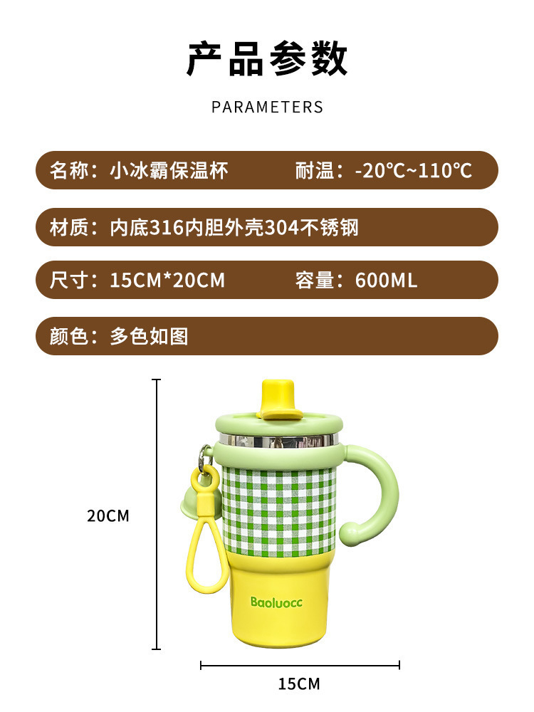 여자 도파민 더블 마시는 밀짚 보온병 컵 316 스테인레스 스틸 컵 손잡이 휴대용 사무실 아이스 컵