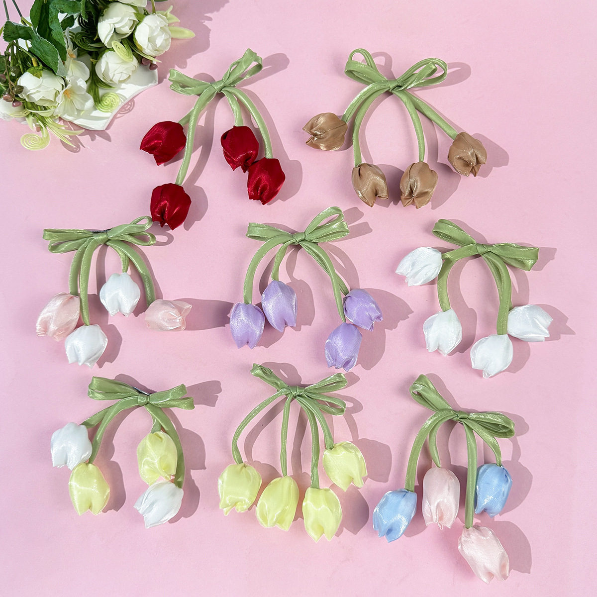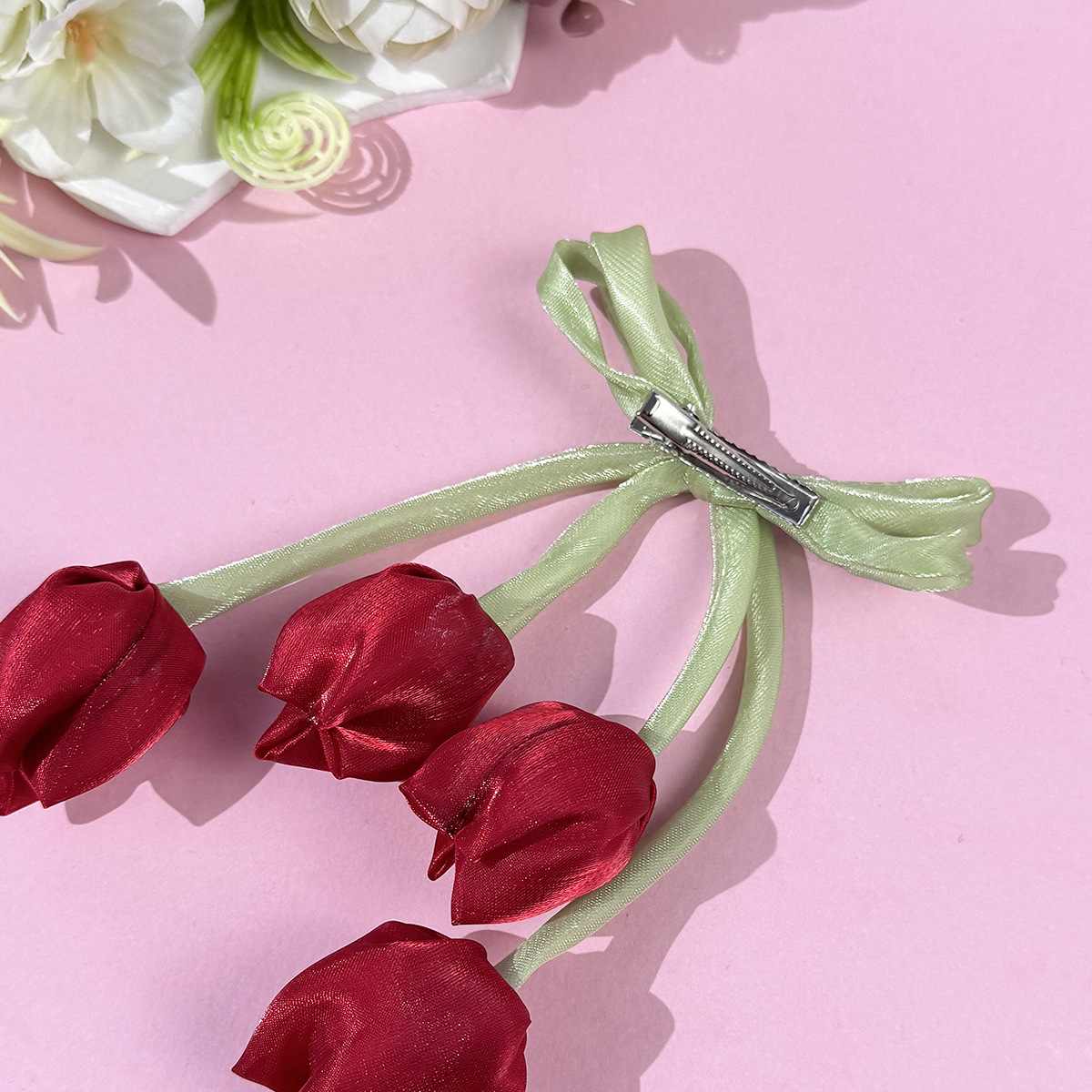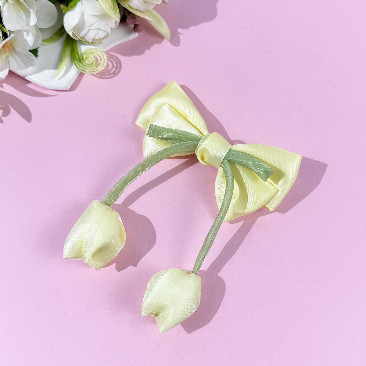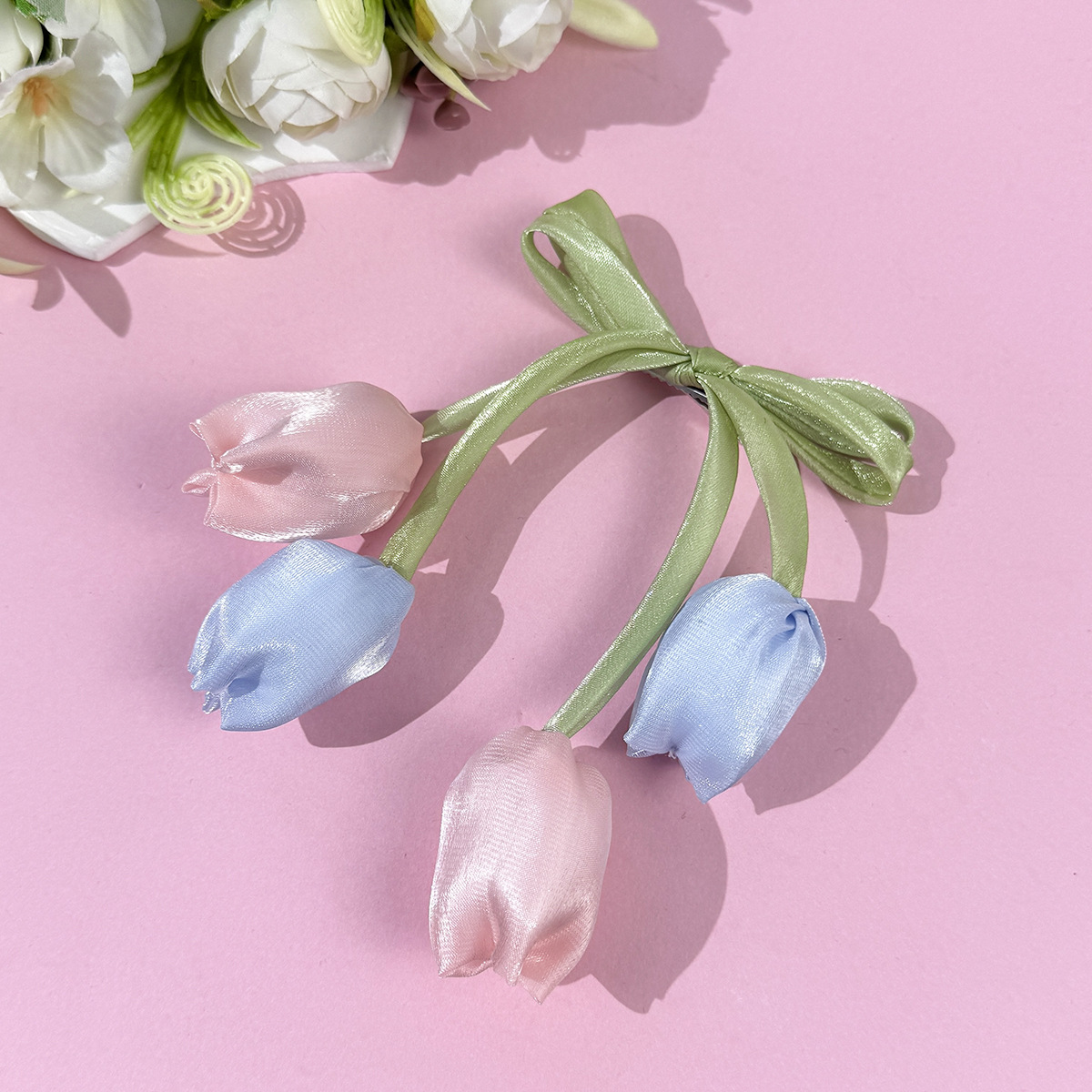 한국 튤립 꽃 리본 머리핀 ins 소녀의 신선하고 달콤하고 귀여운 다재다능한 소녀 헤어 액세서리