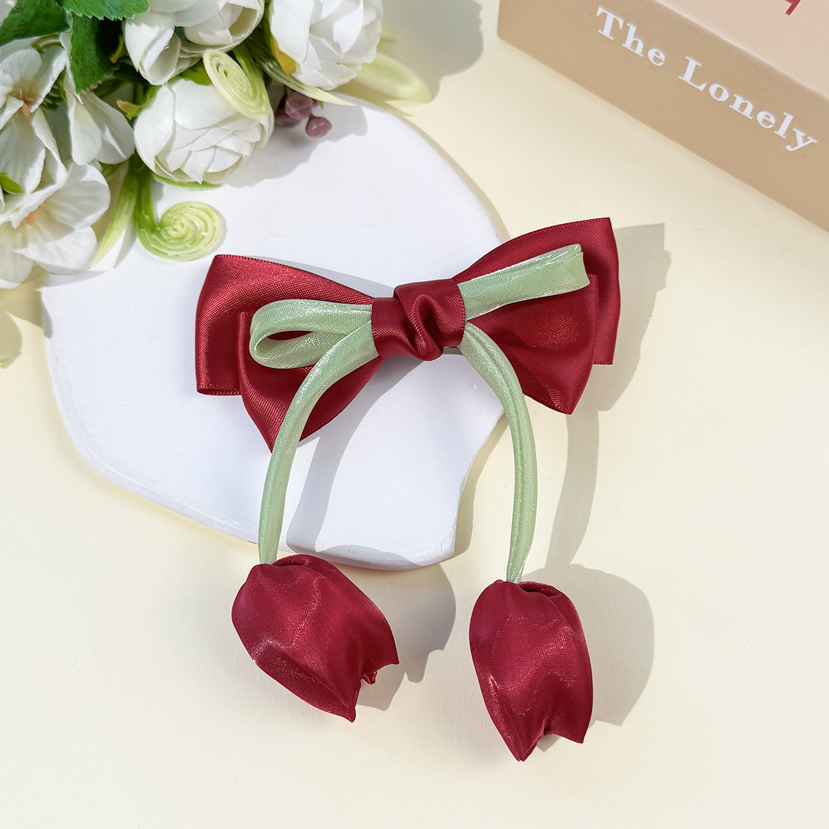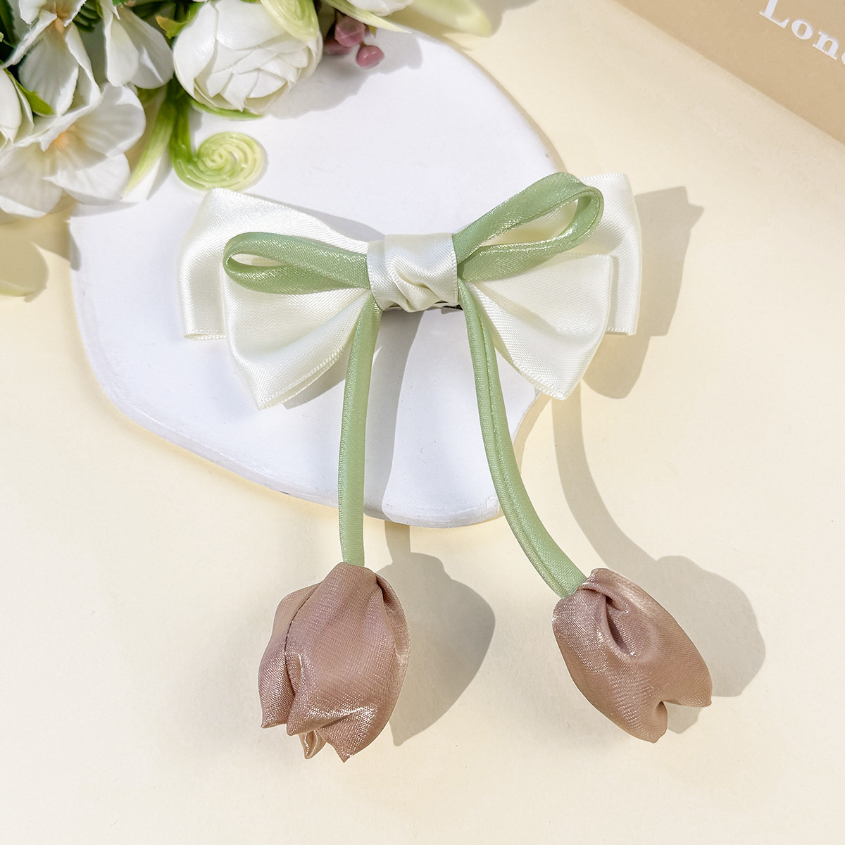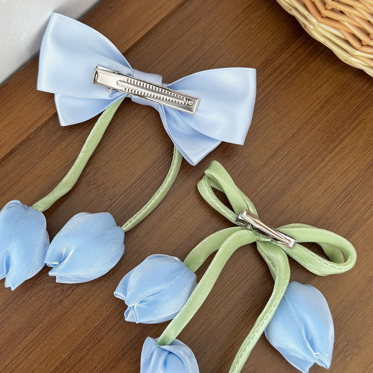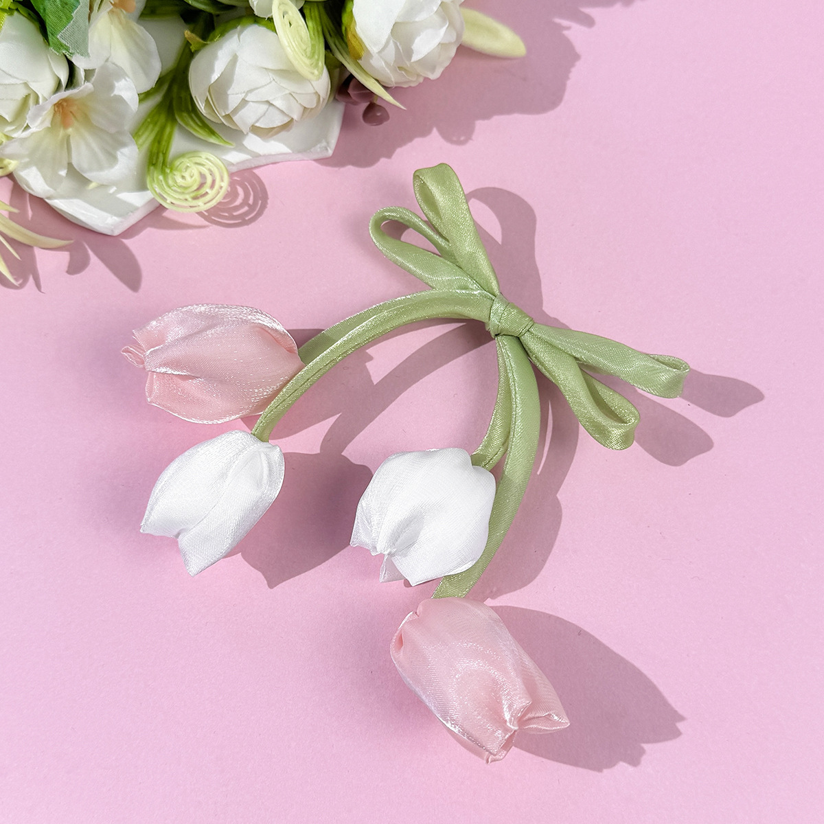 한국 튤립 꽃 리본 머리핀 ins 소녀의 신선하고 달콤하고 귀여운 다재다능한 소녀 헤어 액세서리