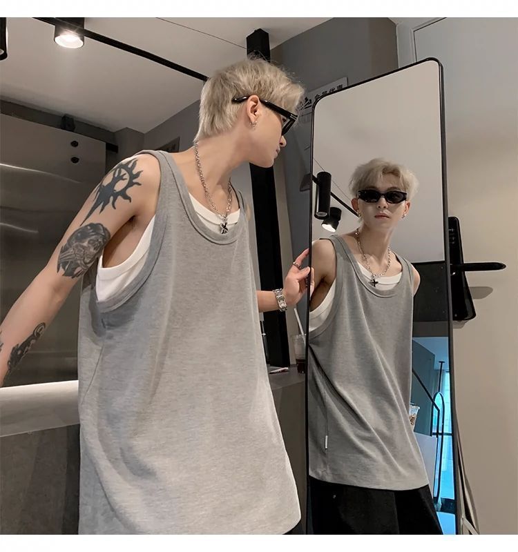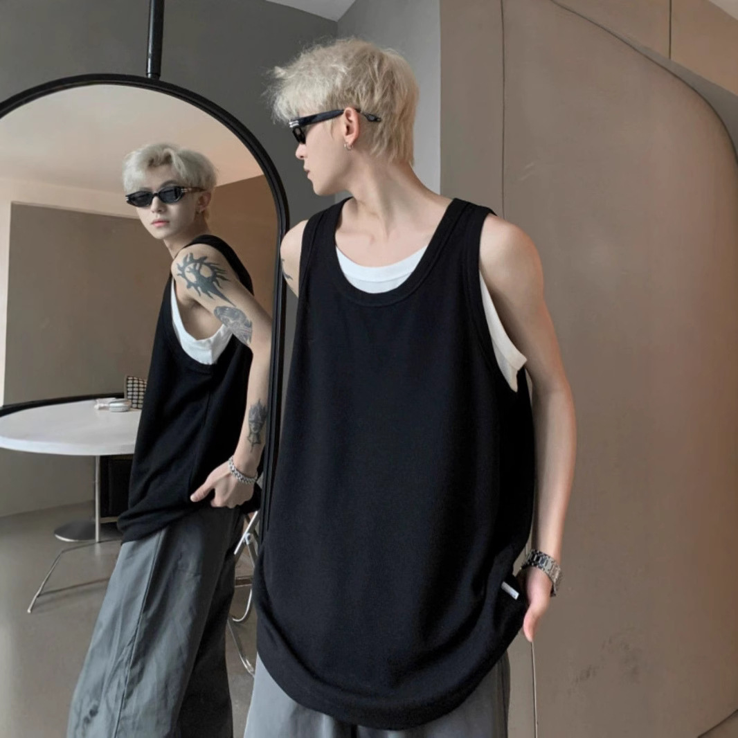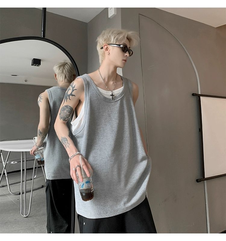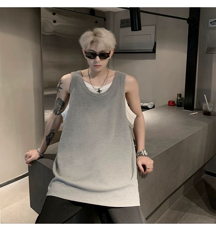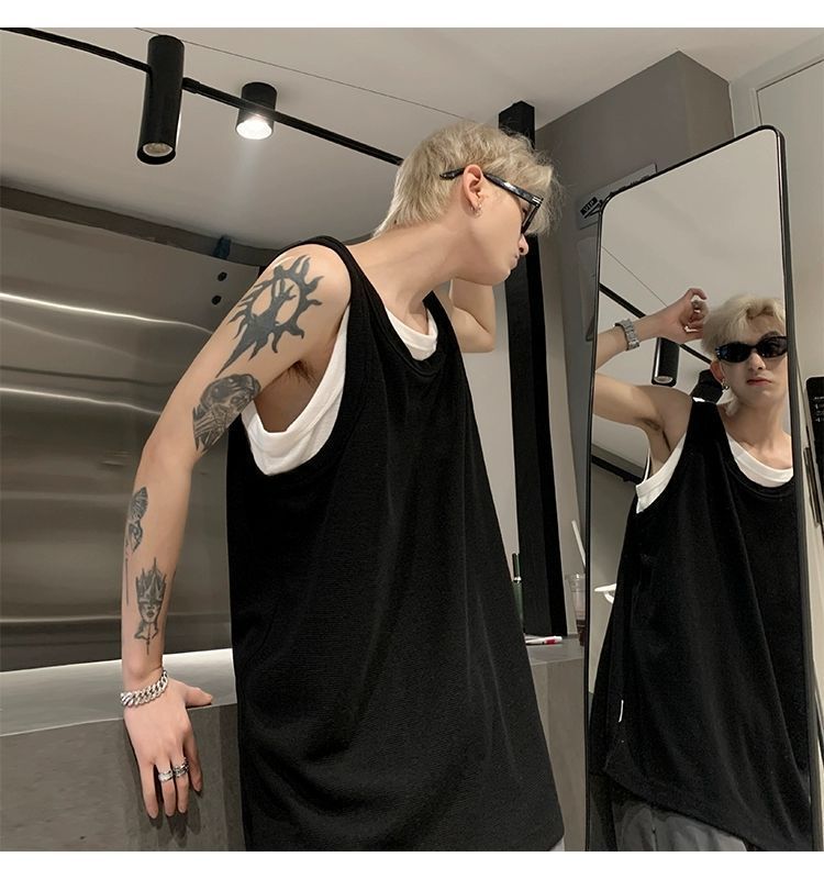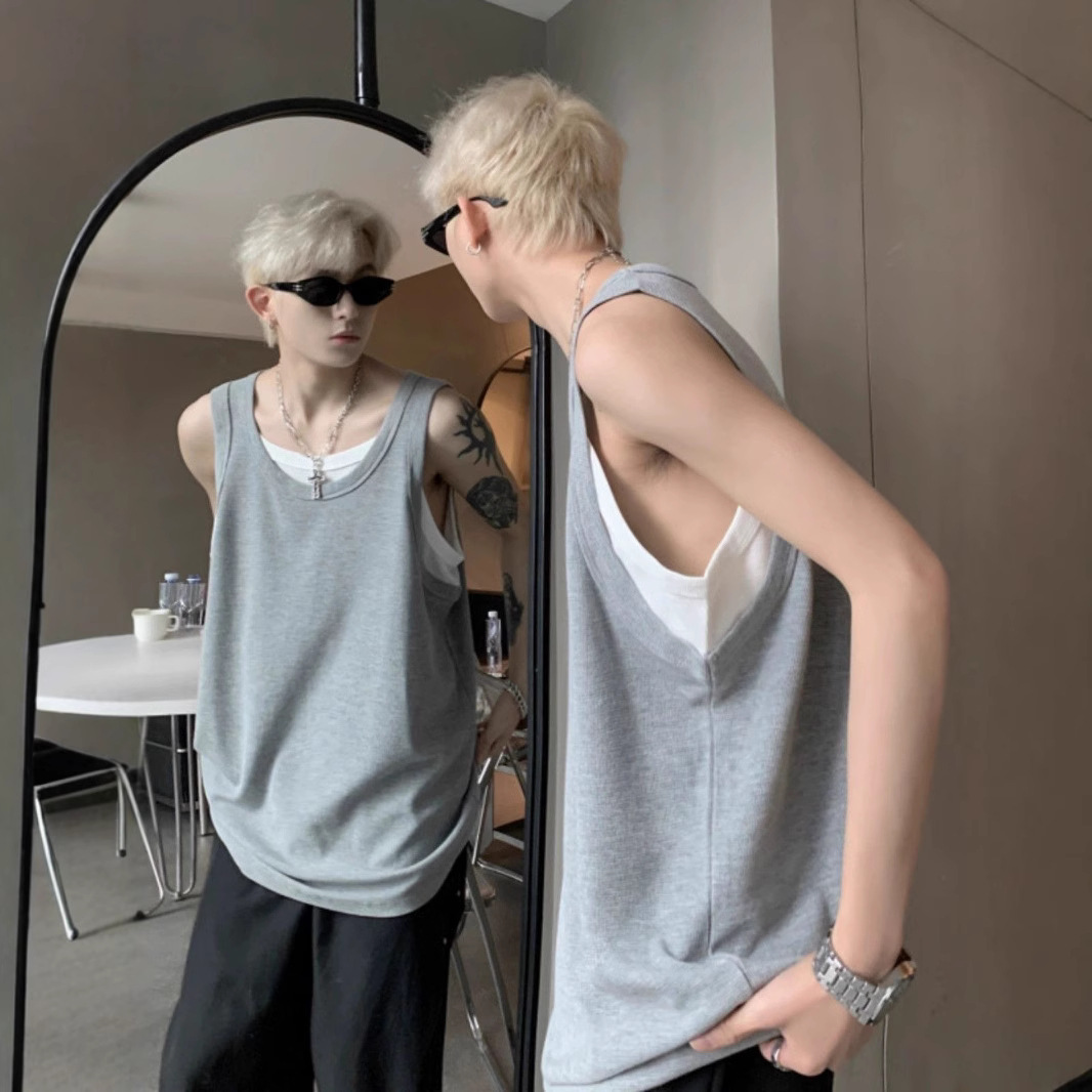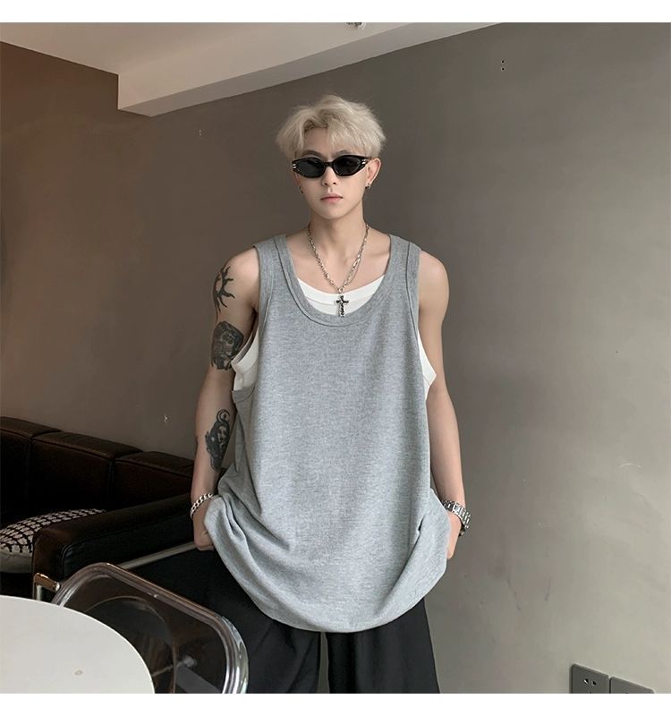 통기성 와플 가짜 투피스 조끼 남성 여름 미국식 I자형 피트니스 스포츠 민소매 셔츠 잘 생긴 조끼스토어 가기
